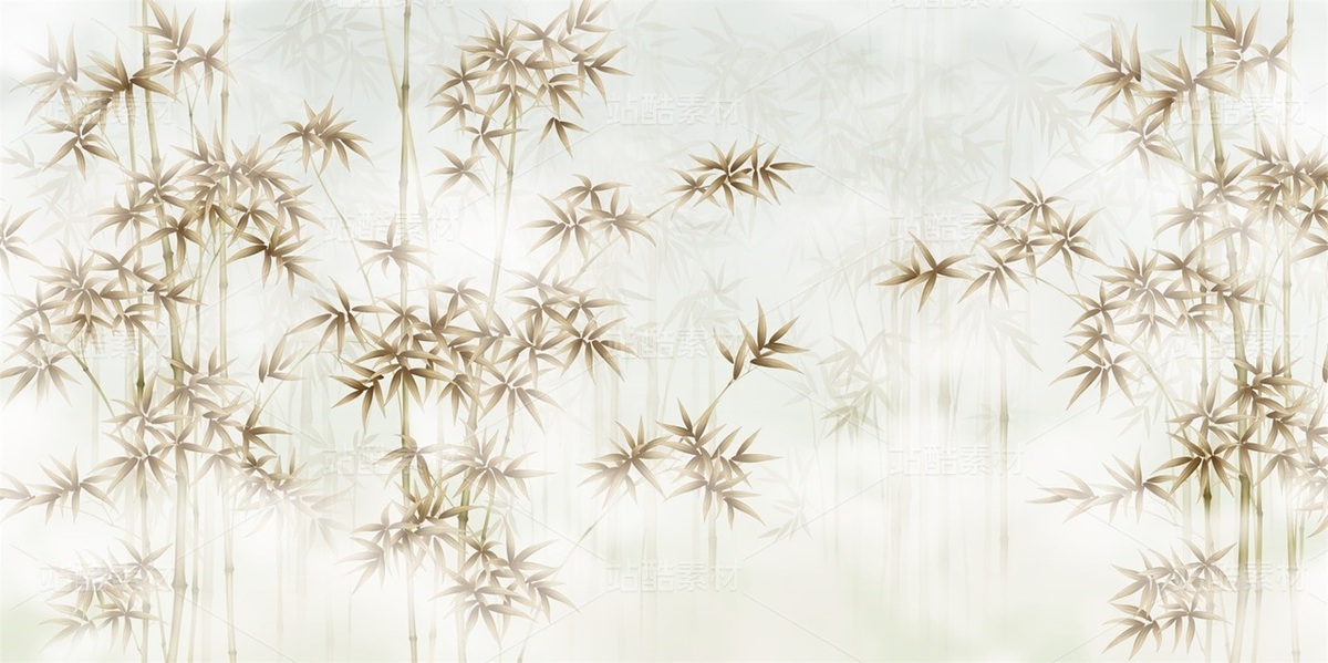 抽象竹鸟装饰画 新中式竹子画 朦胧竹子 适用于家装,酒店,文化场所等,用于做:背景墙、隔断、移门,屏风、玄关。高清分层图可以用UV打印。