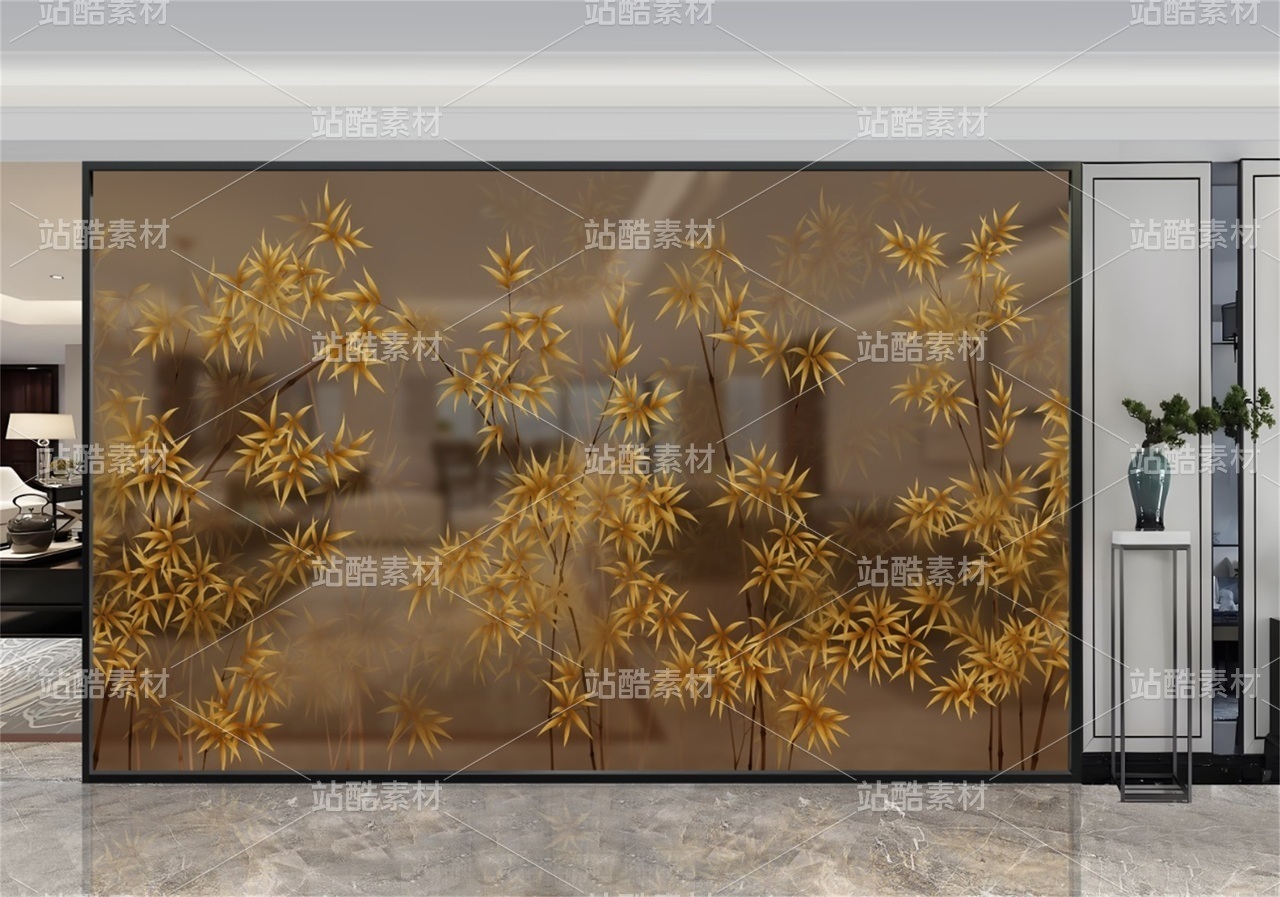 新中式抽象黄金竹子装饰画