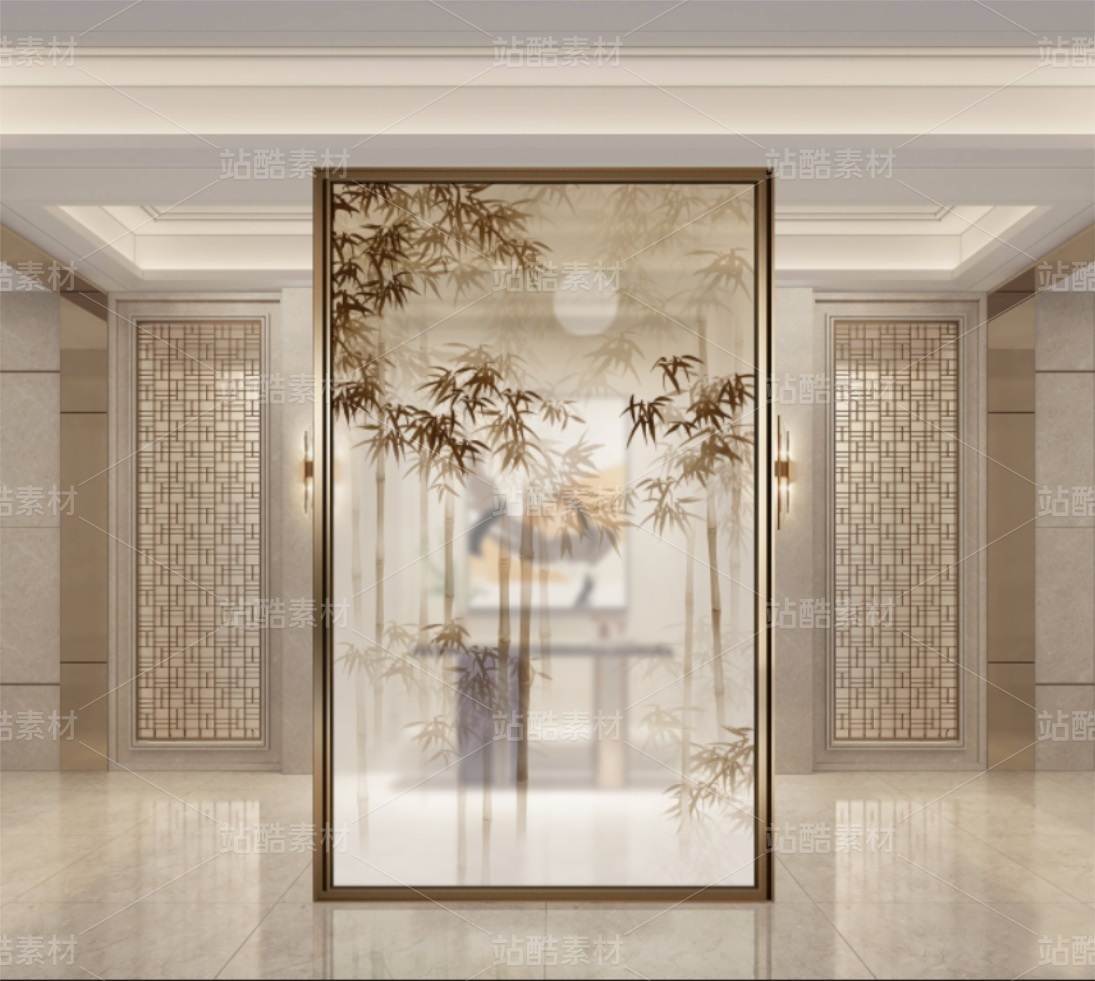 抽象竹鸟装饰画 新中式竹子画 朦胧竹子 适用于家装,酒店,文化场所等,用于做:背景墙、隔断、移门,屏风、玄关。高清分层图可以用UV打印。