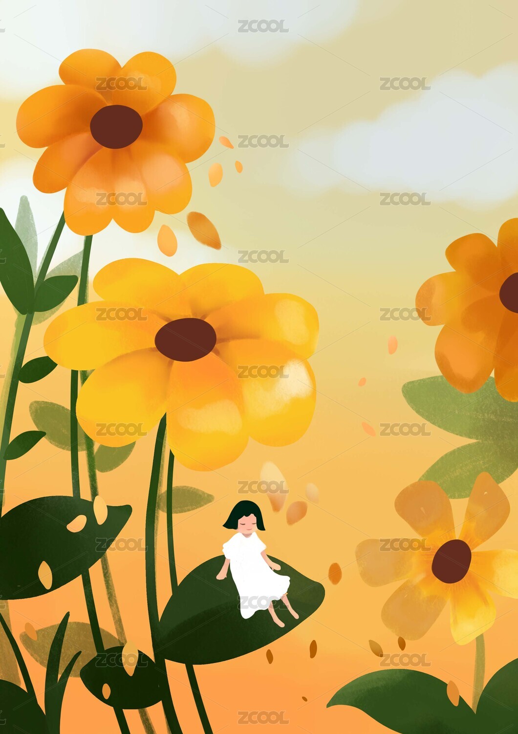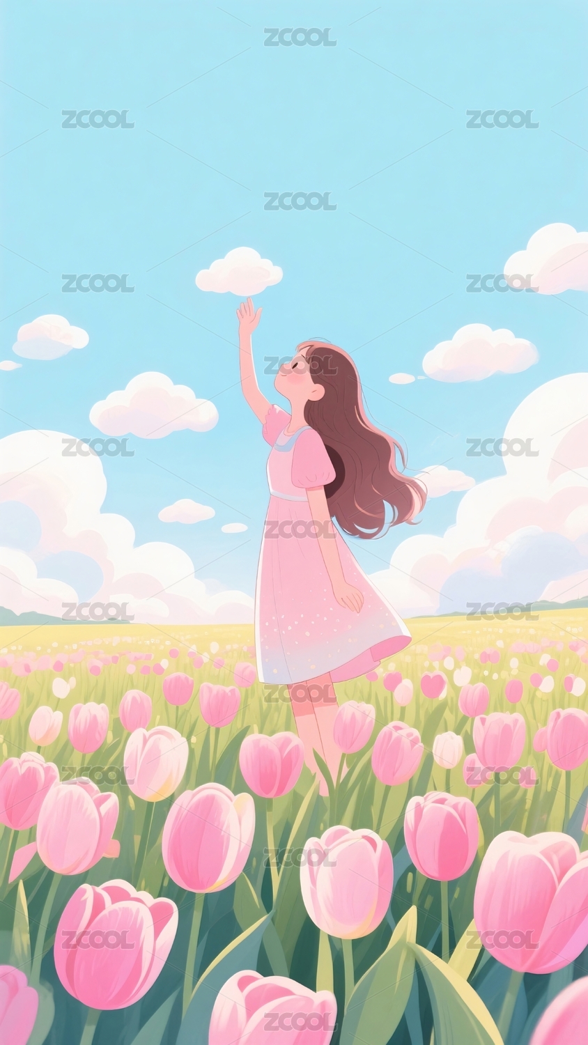 女孩,花朵,草地,赏花,休闲,放松,自然,花卉,田园,春天