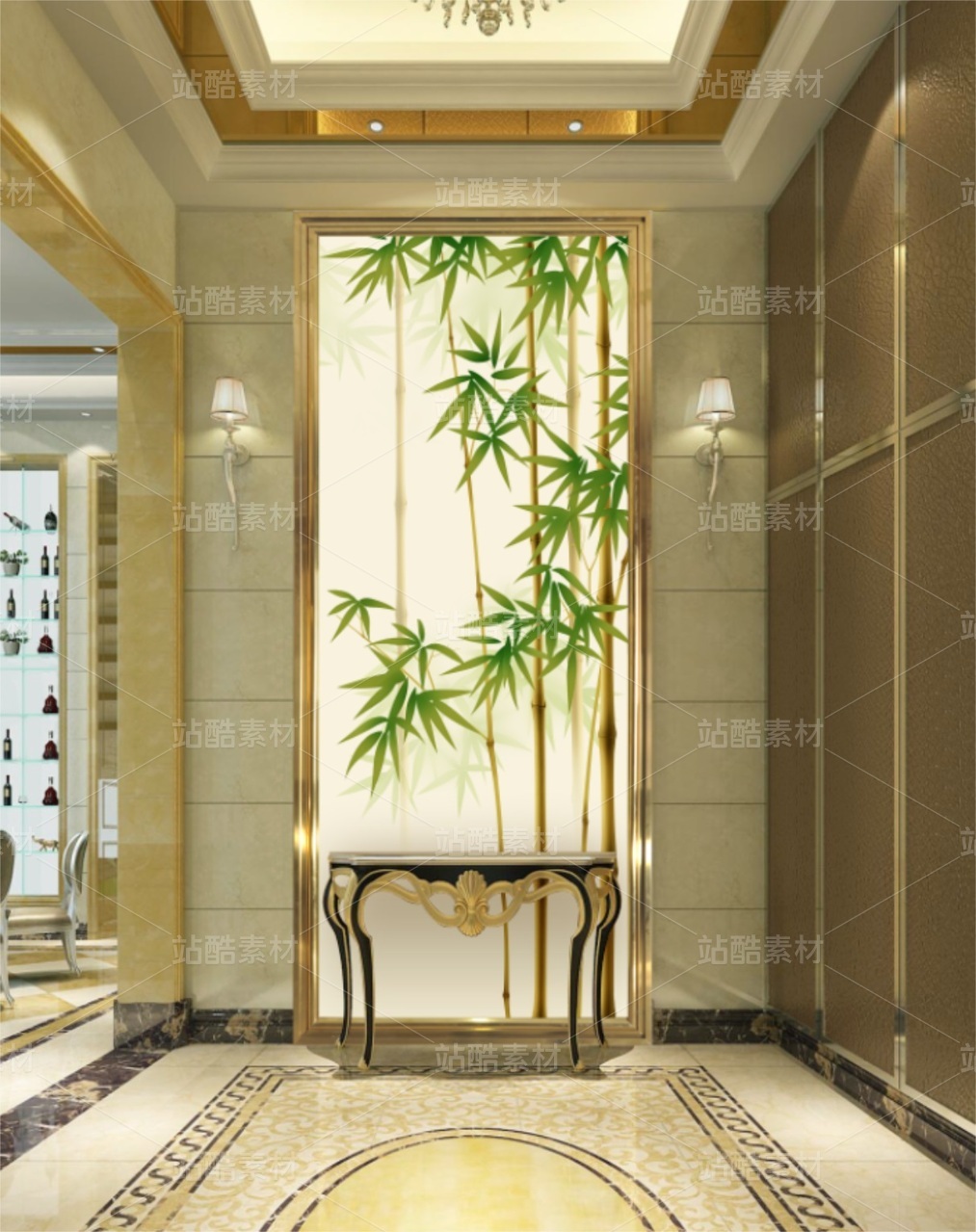 抽象竹鸟装饰画 新中式竹子画 朦胧竹子 适用于家装,酒店,文化场所等,用于做:背景墙、隔断、移门,屏风、玄关。高清分层图可以用UV打印。