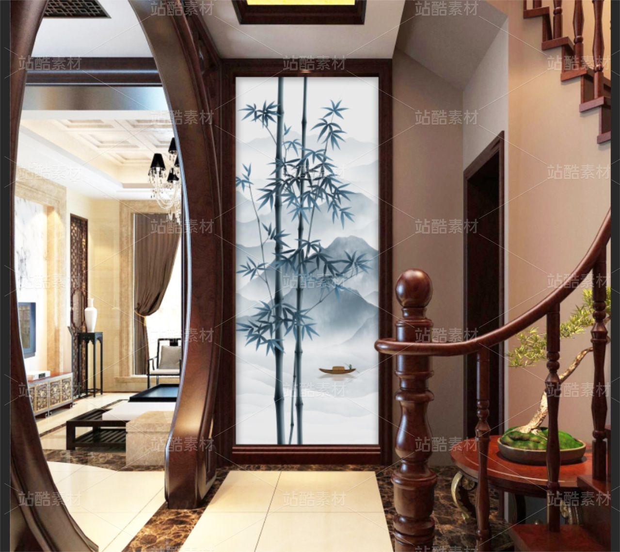 抽象竹鸟装饰画 新中式竹子画 朦胧竹子 适用于家装,酒店,文化场所等,用于做:背景墙、隔断、移门,屏风、玄关。高清分层图可以用UV打印。