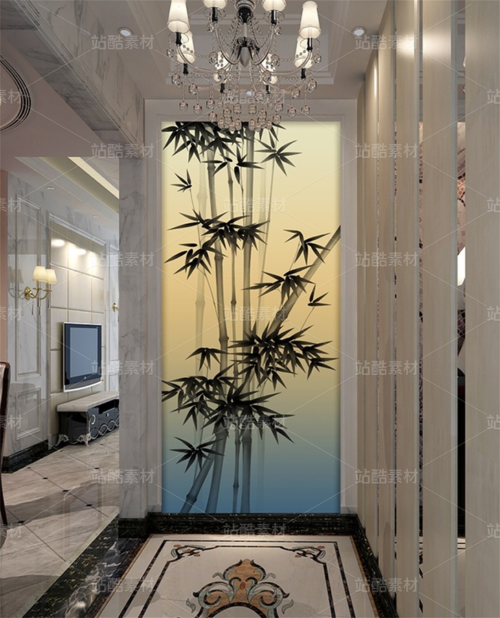 抽象竹鸟装饰画 新中式竹子画 朦胧竹子 适用于家装,酒店,文化场所等,用于做:背景墙、隔断、移门,屏风、玄关。高清分层图可以用UV打印。