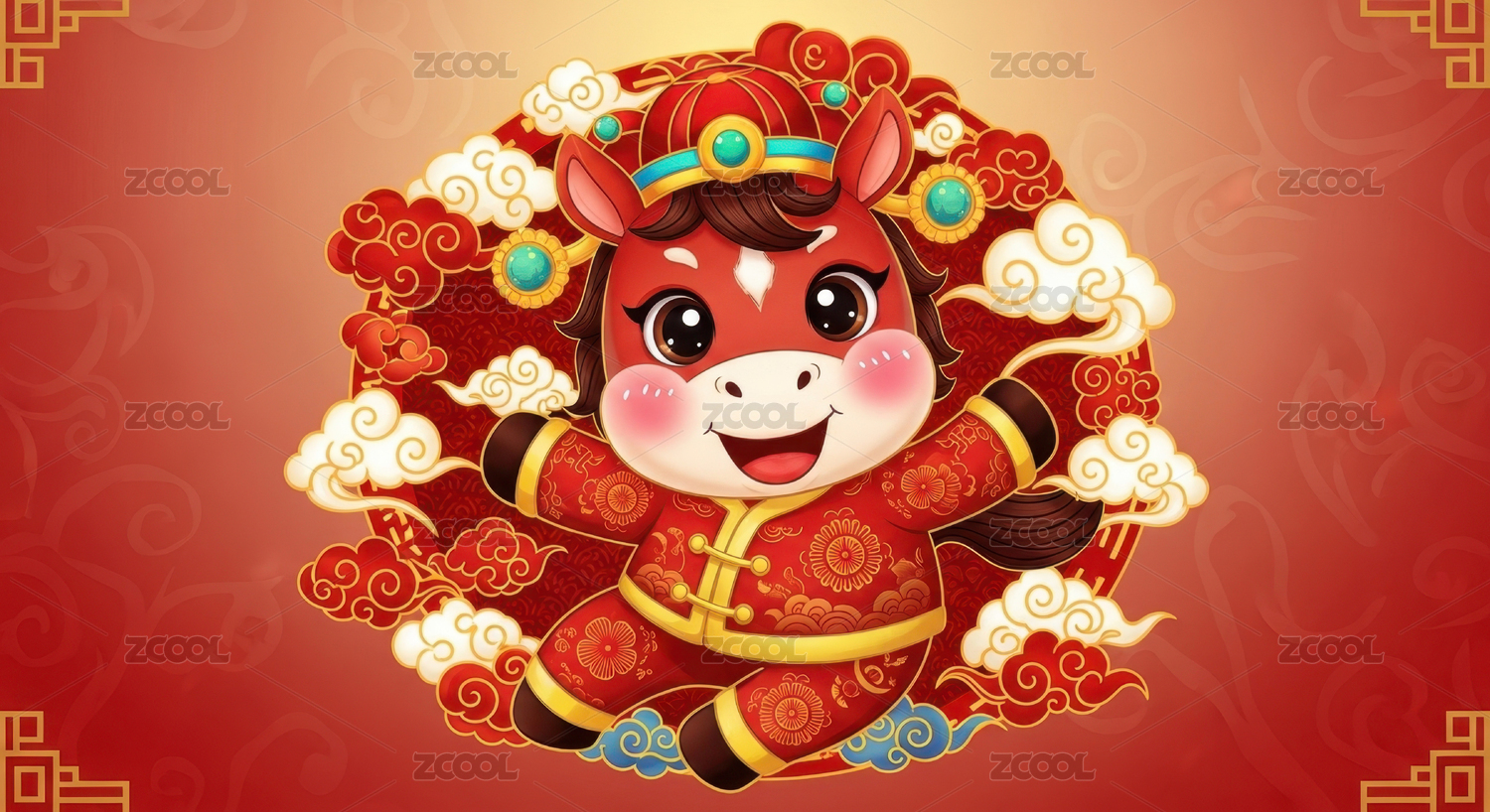 主视觉,商业,壁纸,生肖马,喜庆风,春节,贺岁,中国结,舞狮,元宝