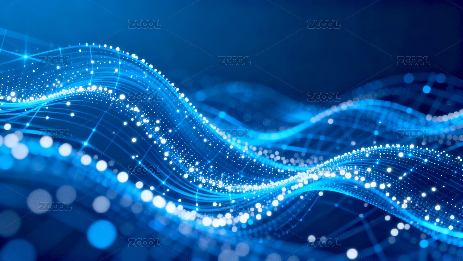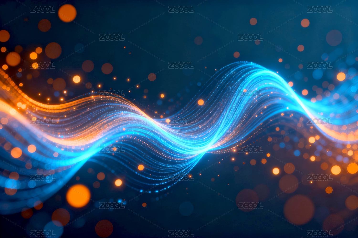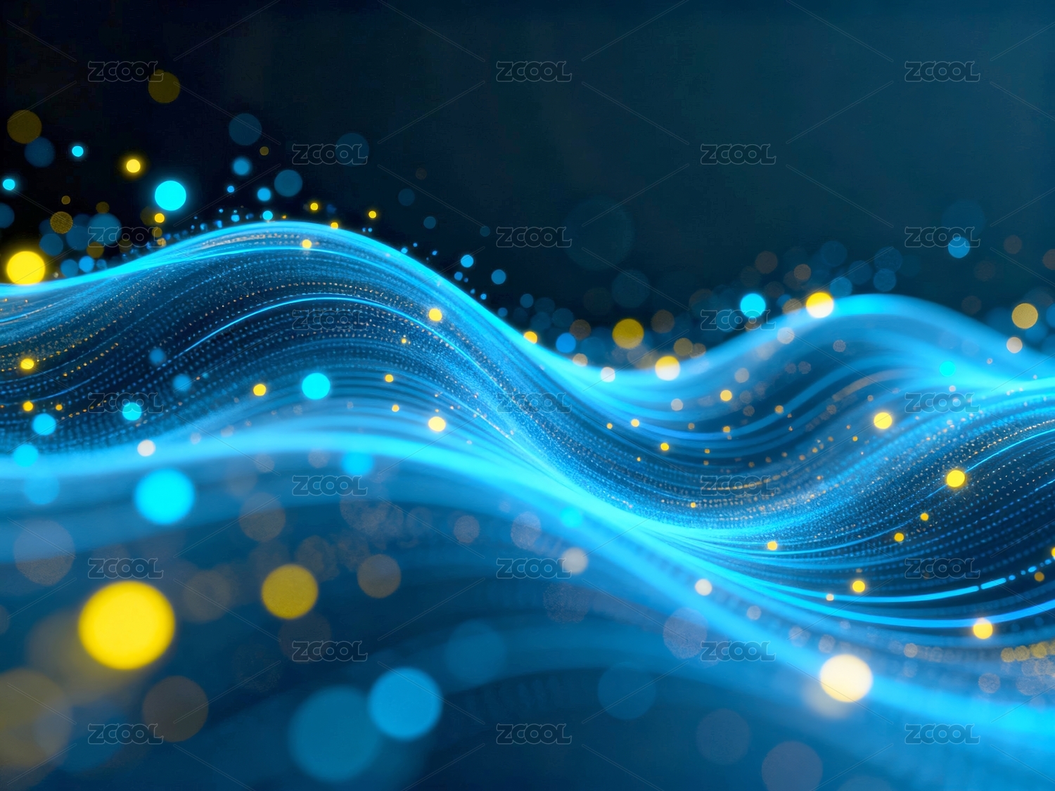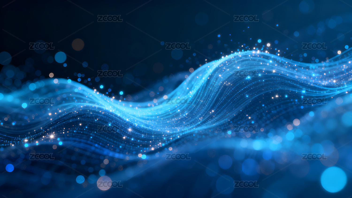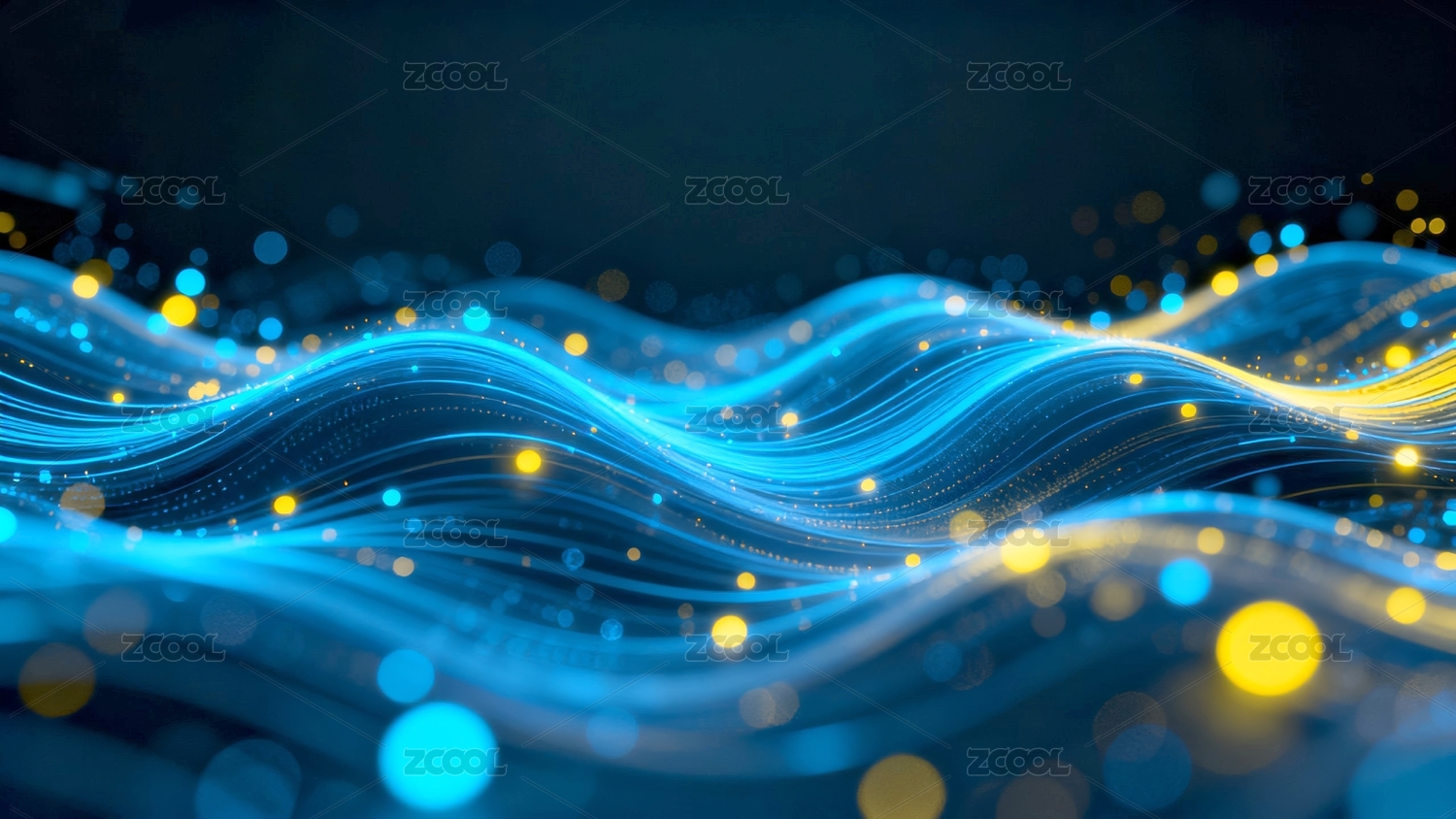 深蓝渐变金蓝光点波浪线