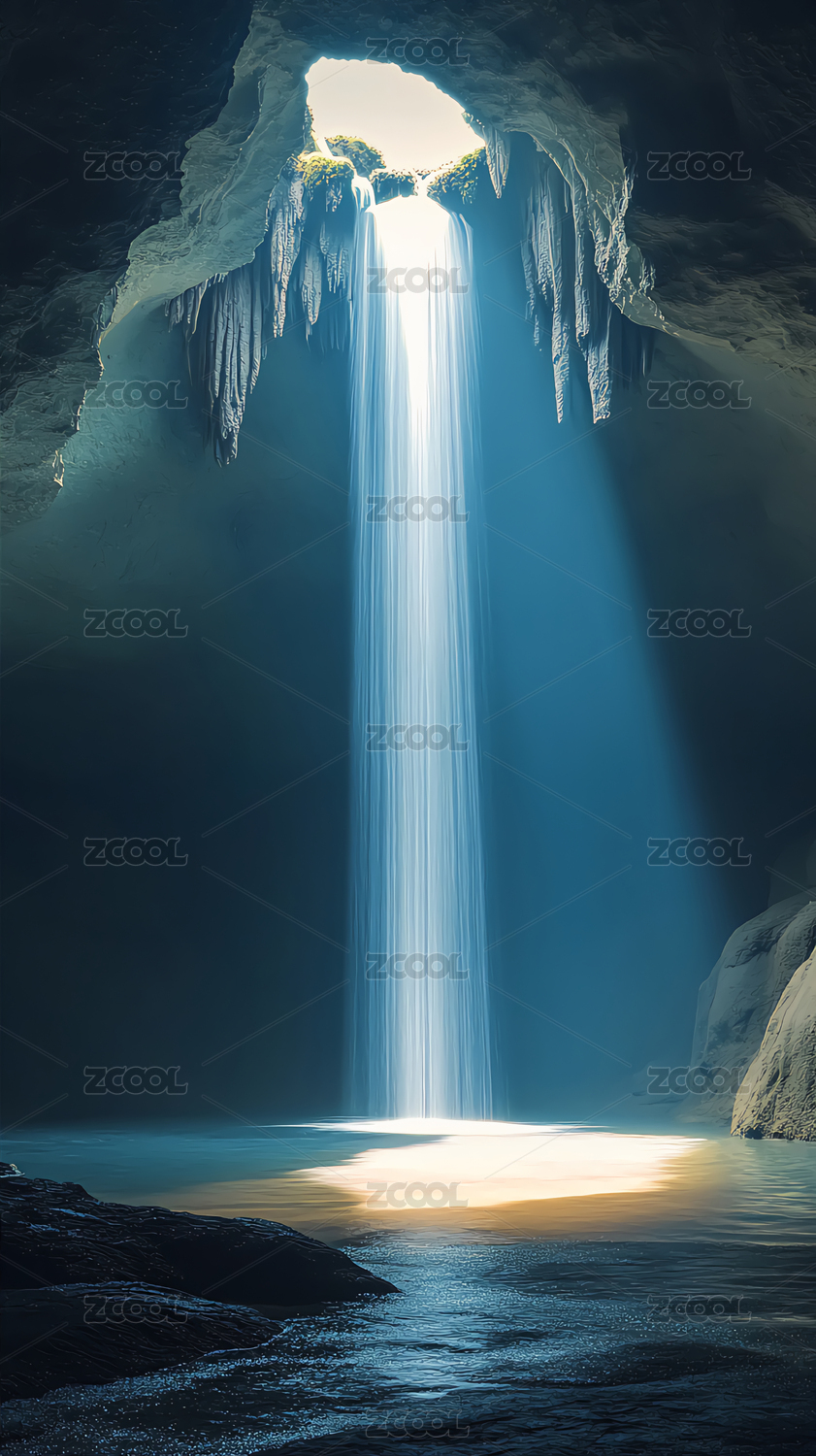 山洞的光束瀑布