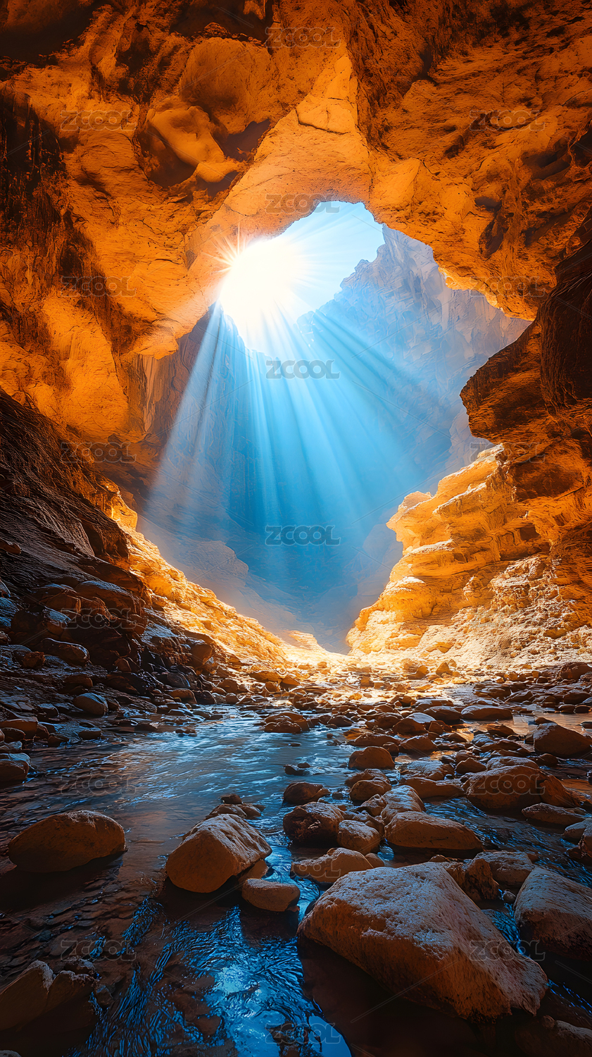 洞穴阳光光线照射岩石地貌