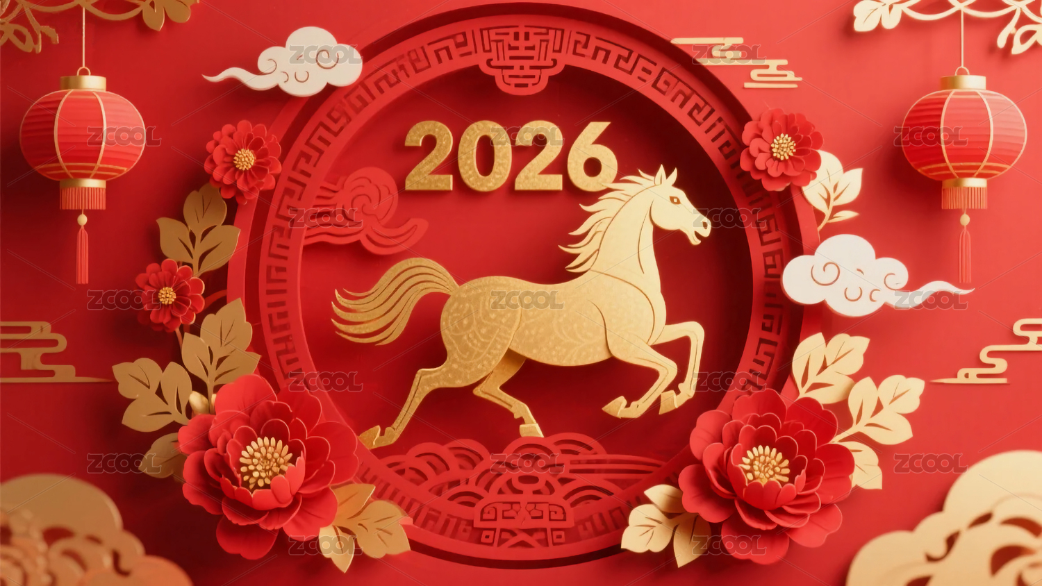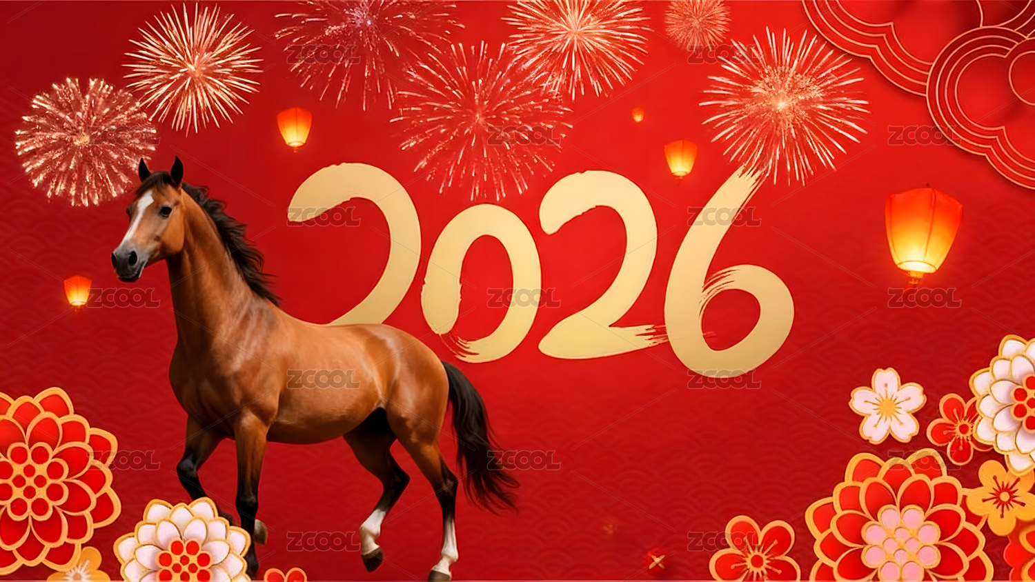 新年,烟花,骏马,红色,背景,灯笼,中国结,花朵,喜庆,春节