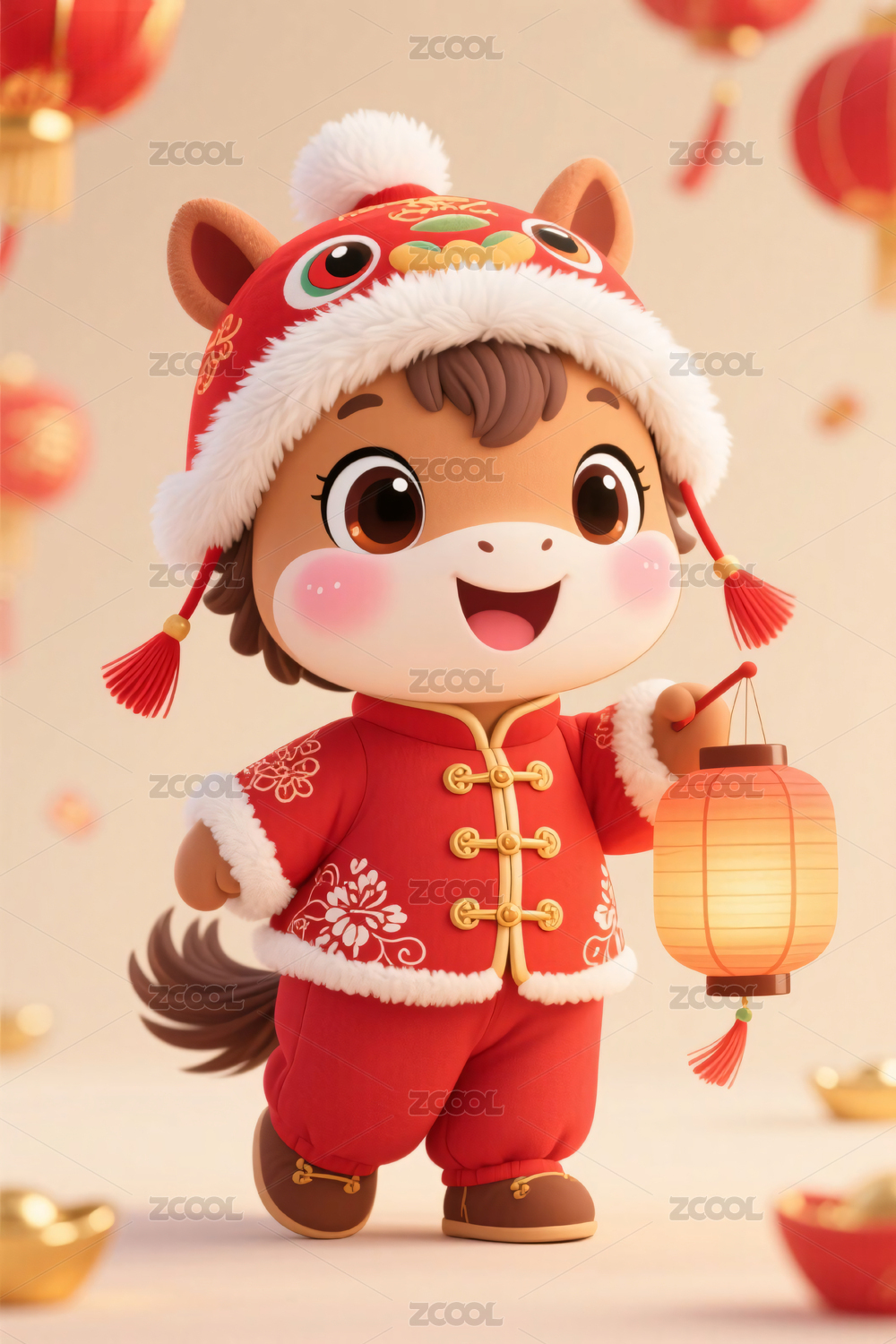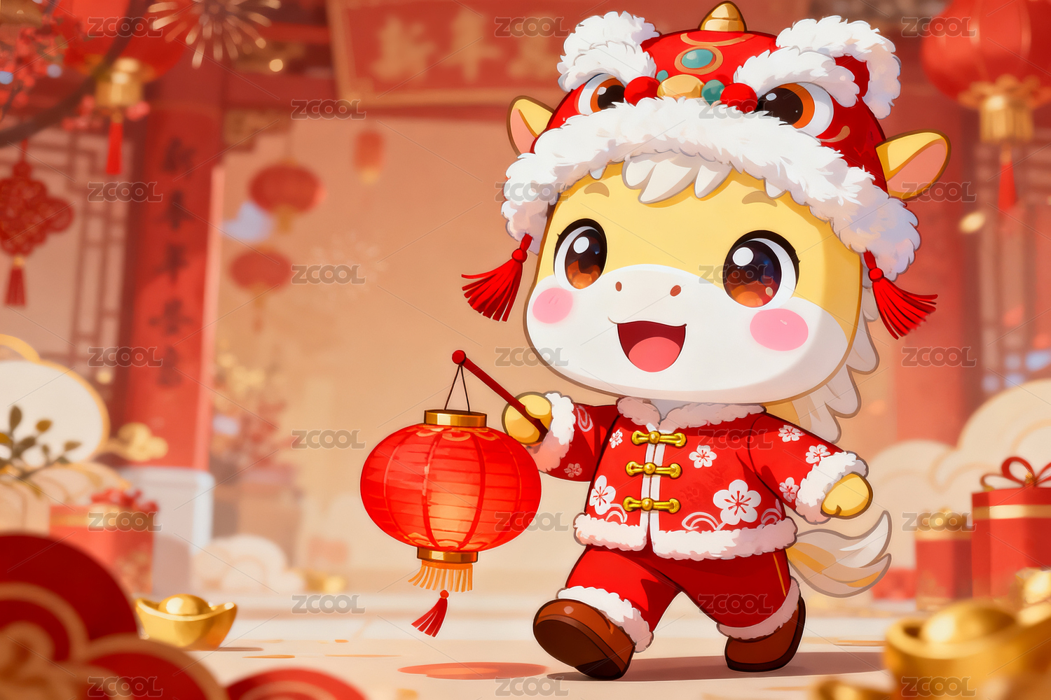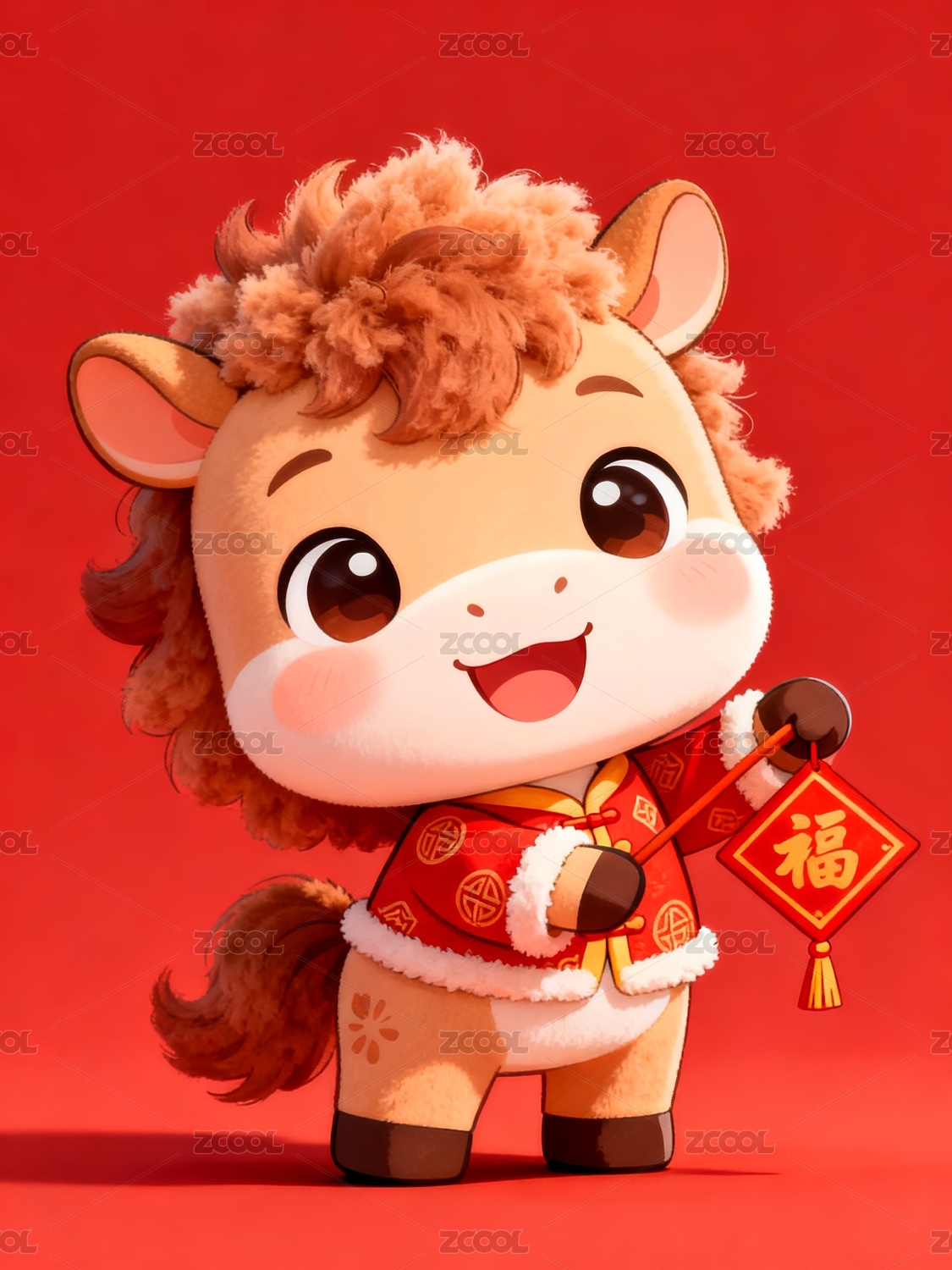 主视觉,商业,壁纸,生肖马,喜庆风,春节,贺岁,中国结,舞狮,元宝