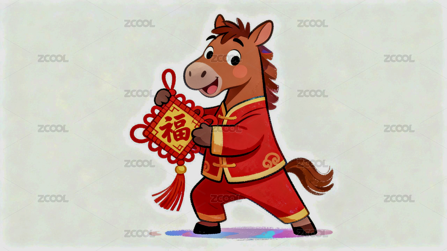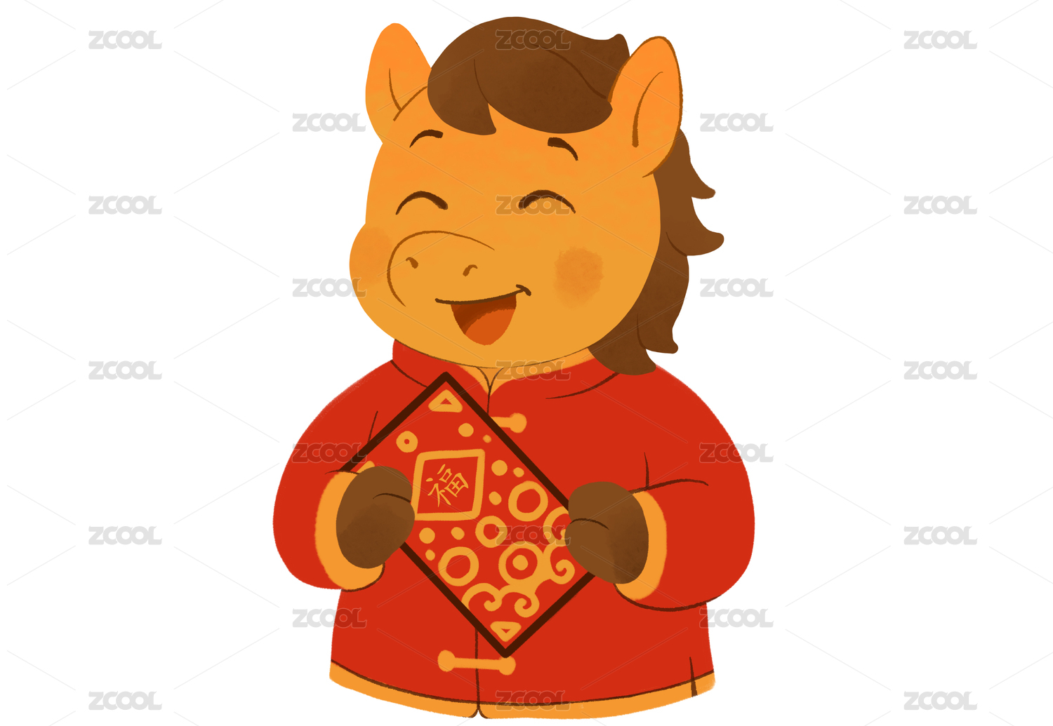 卡通红马喜庆持卷轴喜庆2026年马年插画