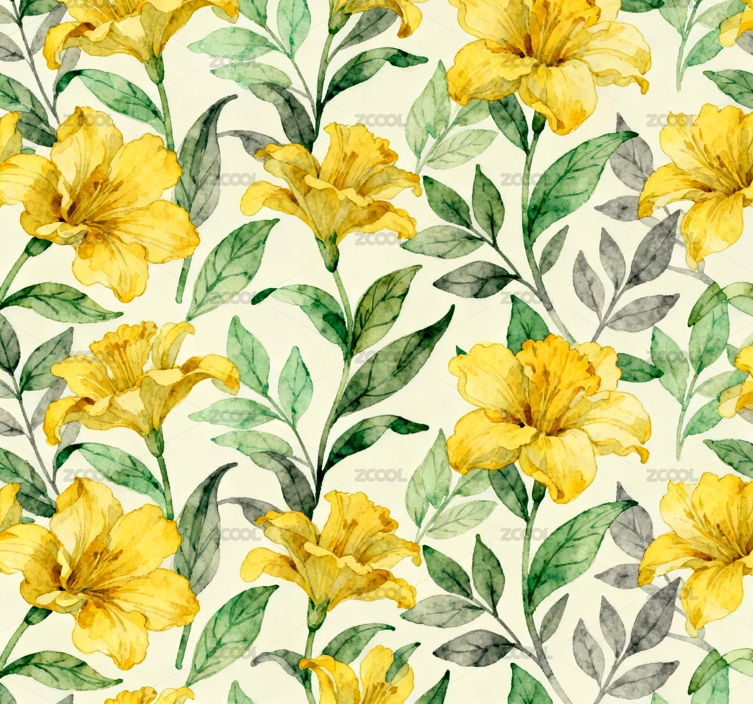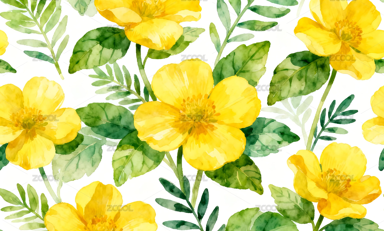 清新治愈黄色花朵插画图案