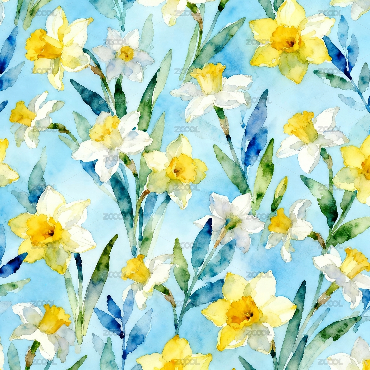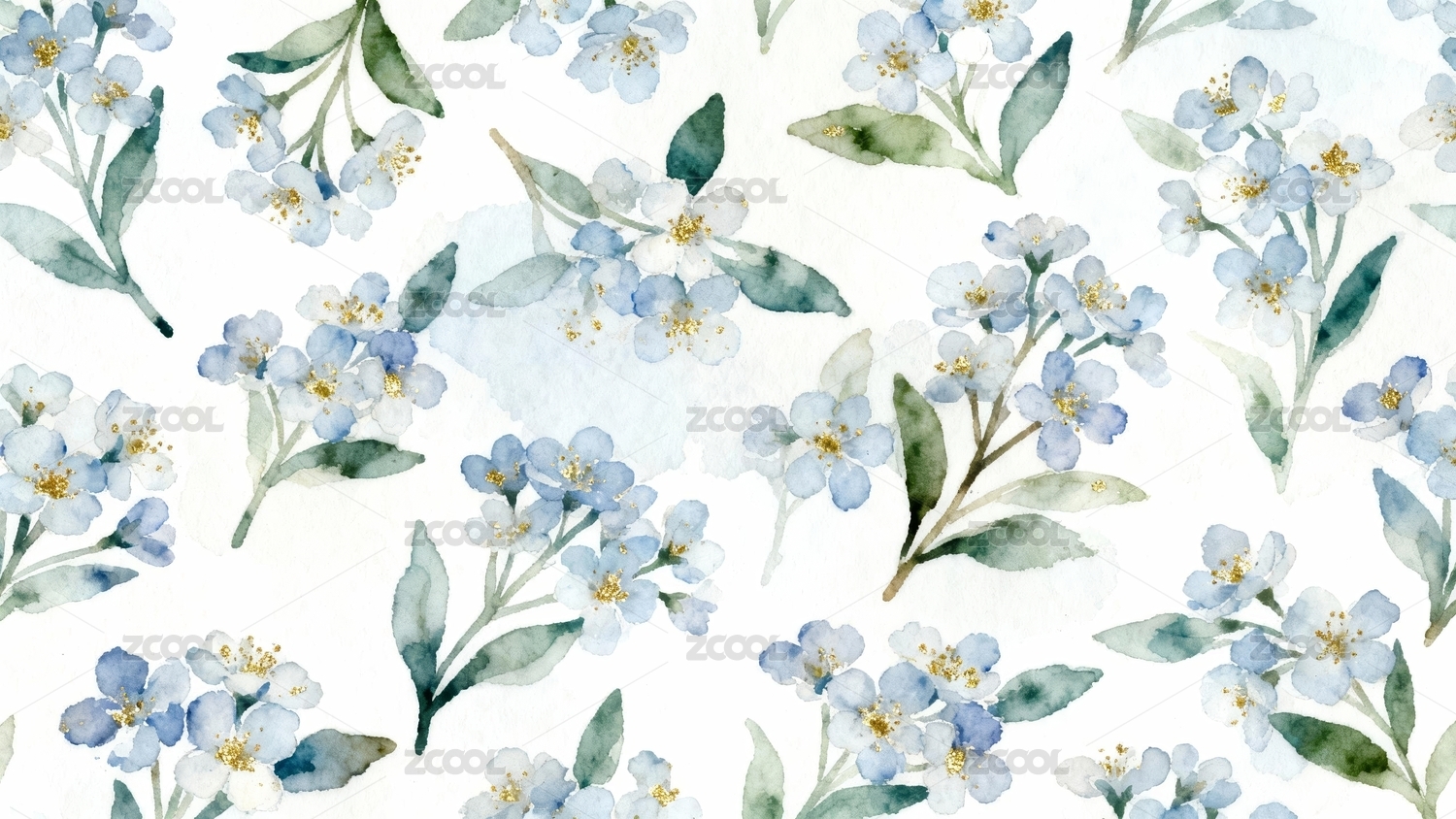 水彩蓝花卉无缝图案背景
