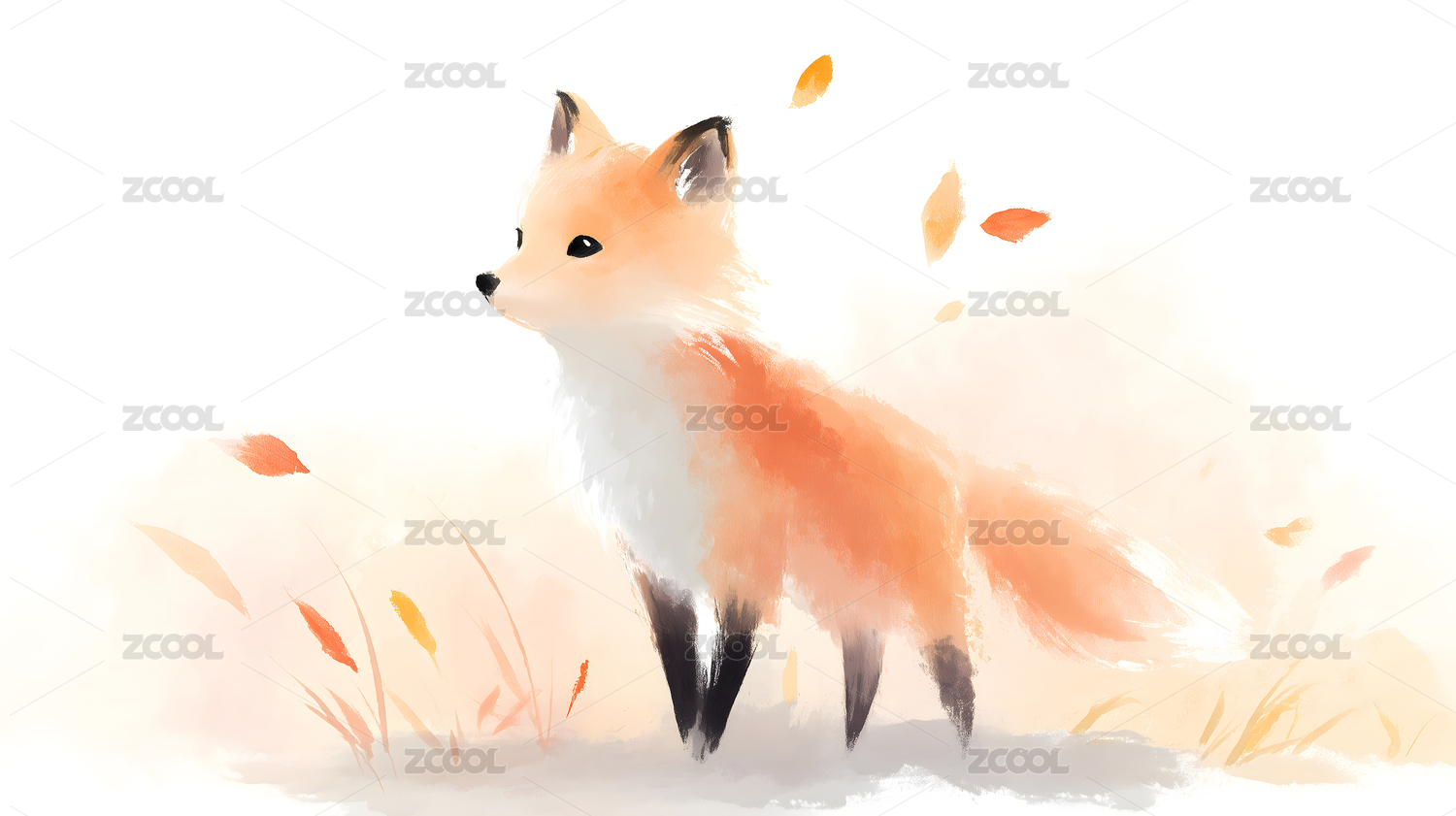 可爱,自然,树叶,背景,橙色,清新,风景,绘画,动物,狐狸