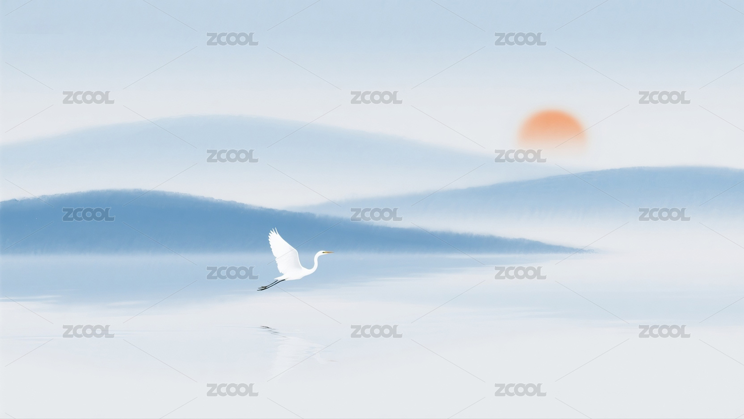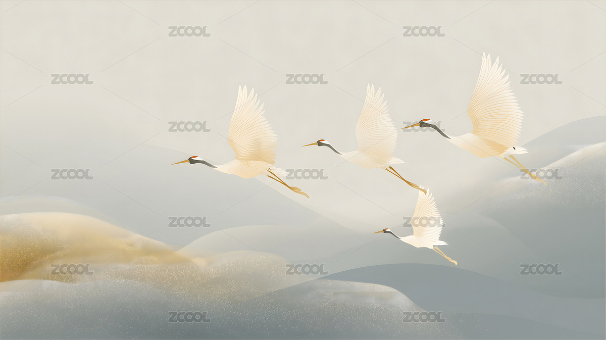天空,简约,仙鹤,山峦,飞翔,水墨,意境,羽翼,云雾,朦胧
