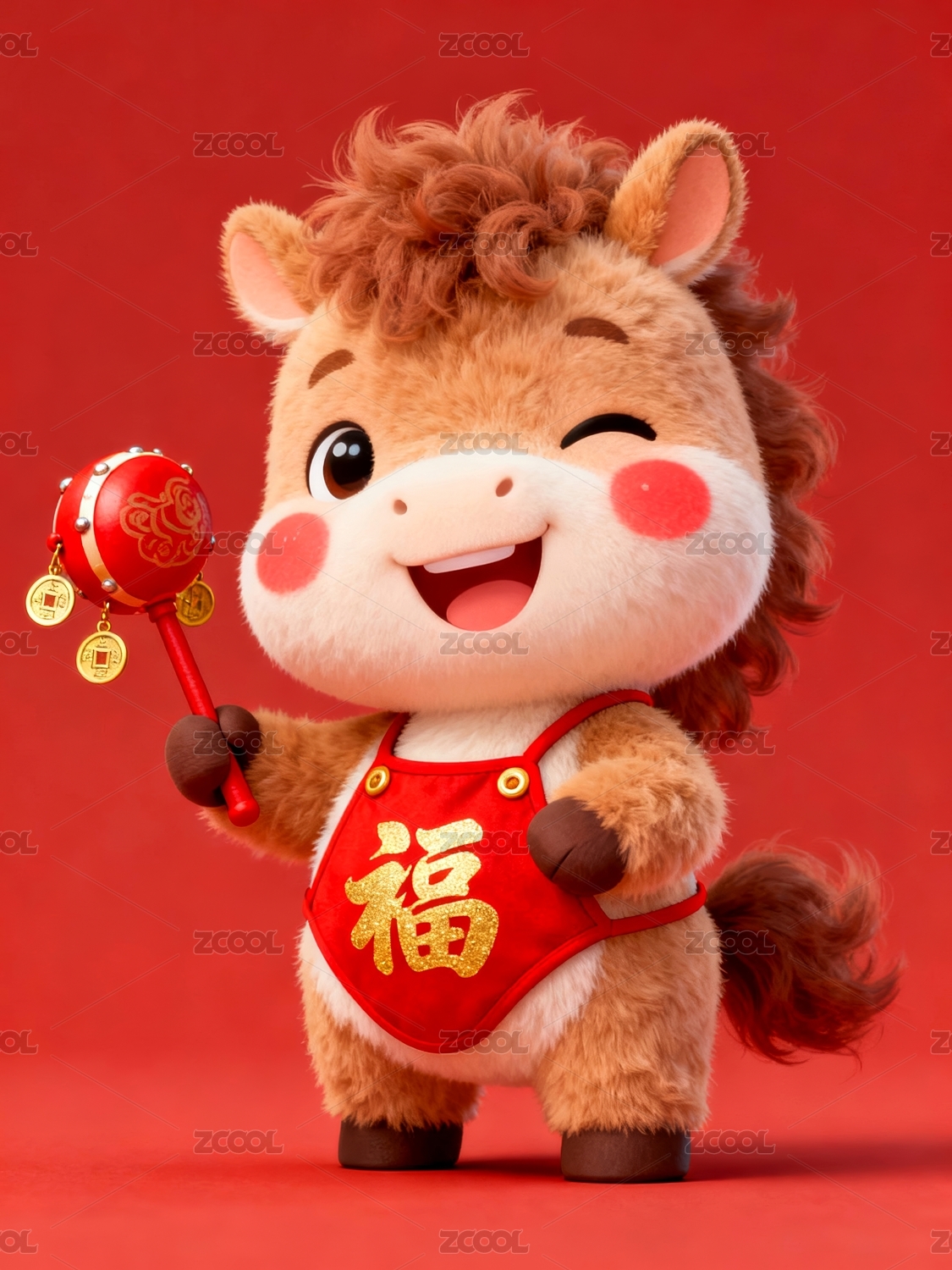 主视觉,商业,壁纸,生肖马,喜庆风,春节,贺岁,中国结,舞狮,元宝