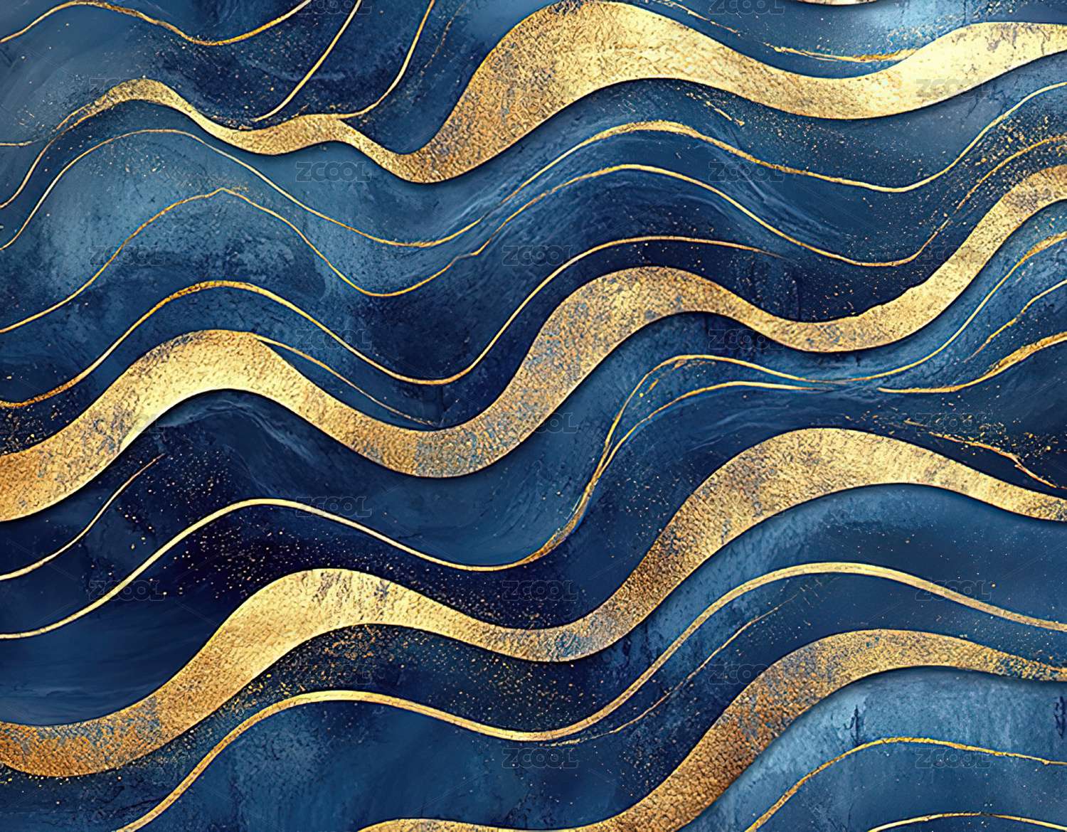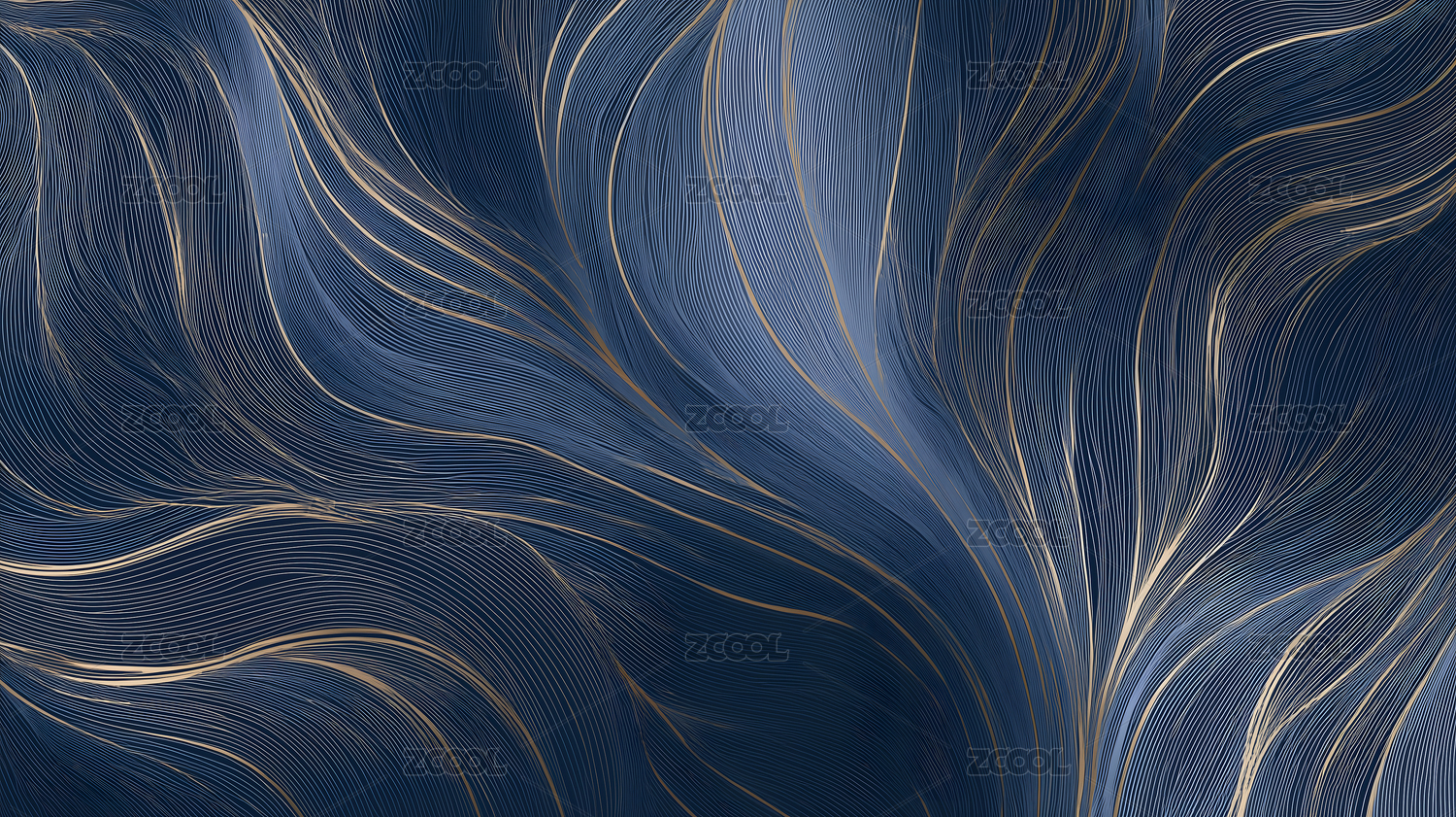 深蓝色纹理与金色线条的抽象设计