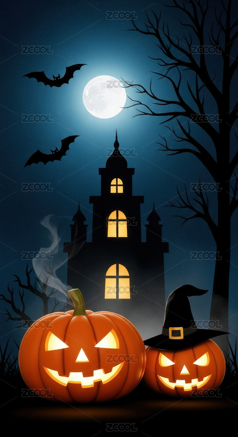 万圣节,城堡,南瓜灯,蝙蝠,夜景,鬼怪,恐怖,节日,月夜,夜晚