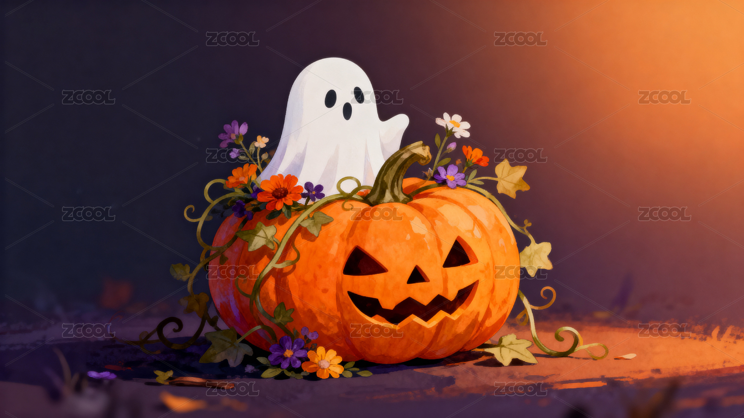 万圣节可爱幽灵南瓜场景