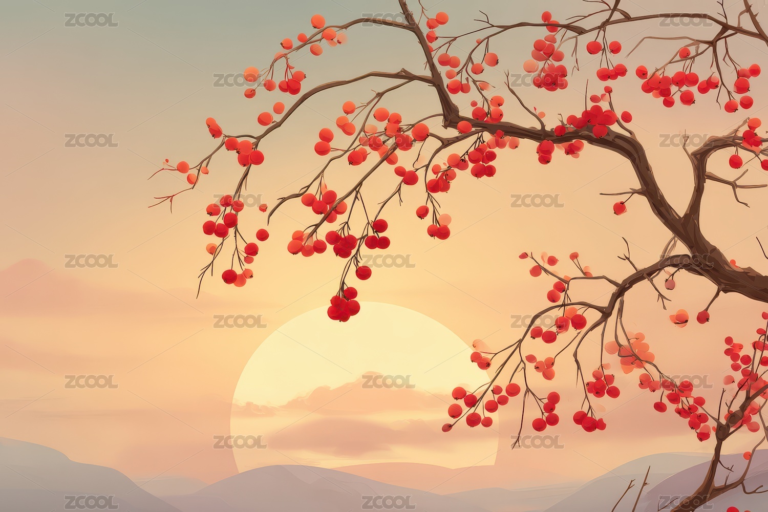 金秋,秋天,插画,自然,手绘,清新,秋景,风景,红叶,传统