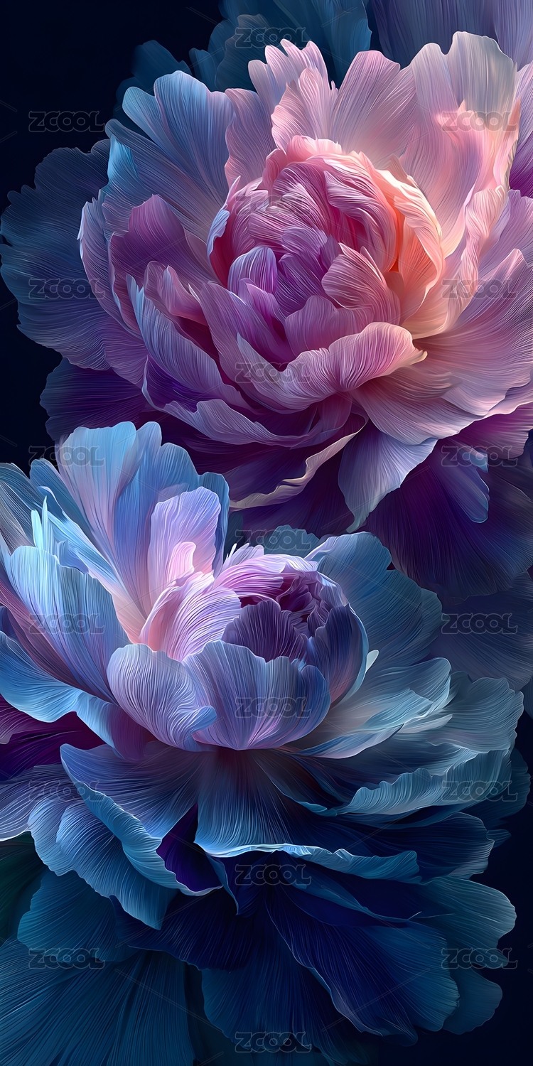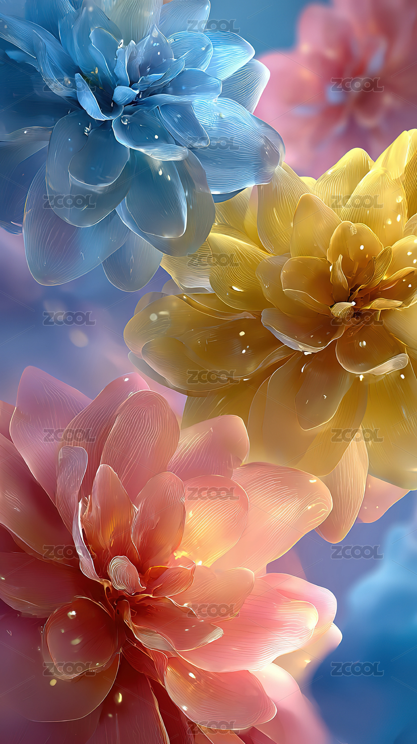 梦幻烟雾环绕的柔美粉橙花朵图景