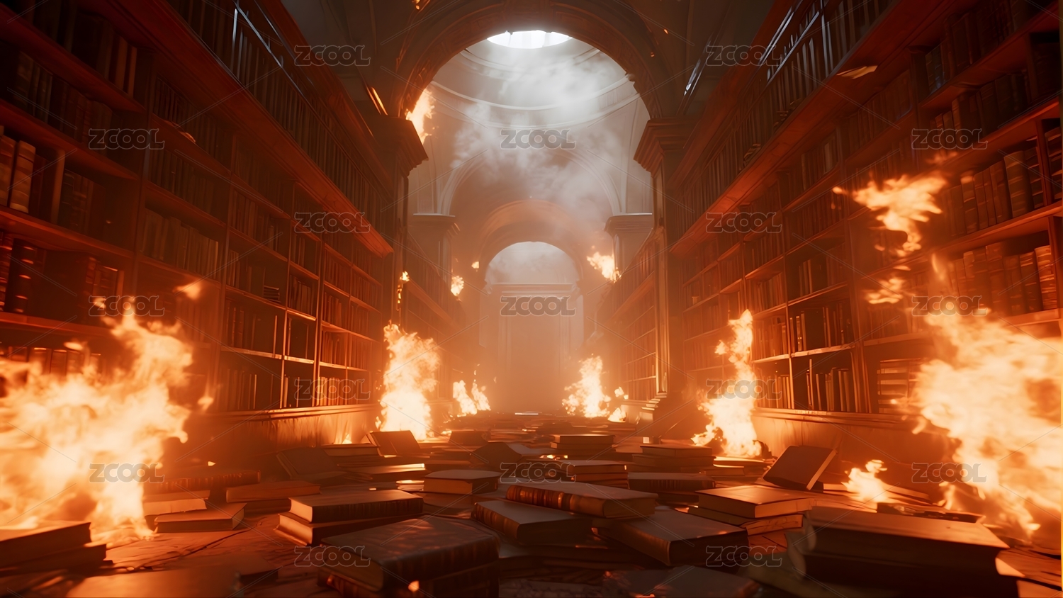 万圣节,幽灵,图书馆,书籍,黑袍人,走廊,昏暗光线,蜘蛛网,阴影,悬疑