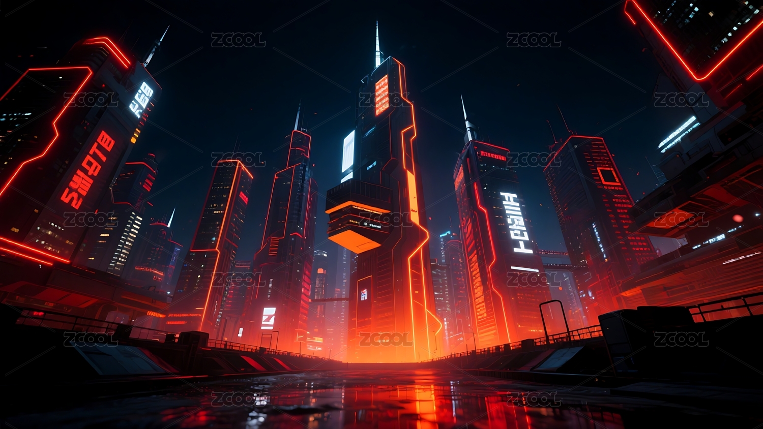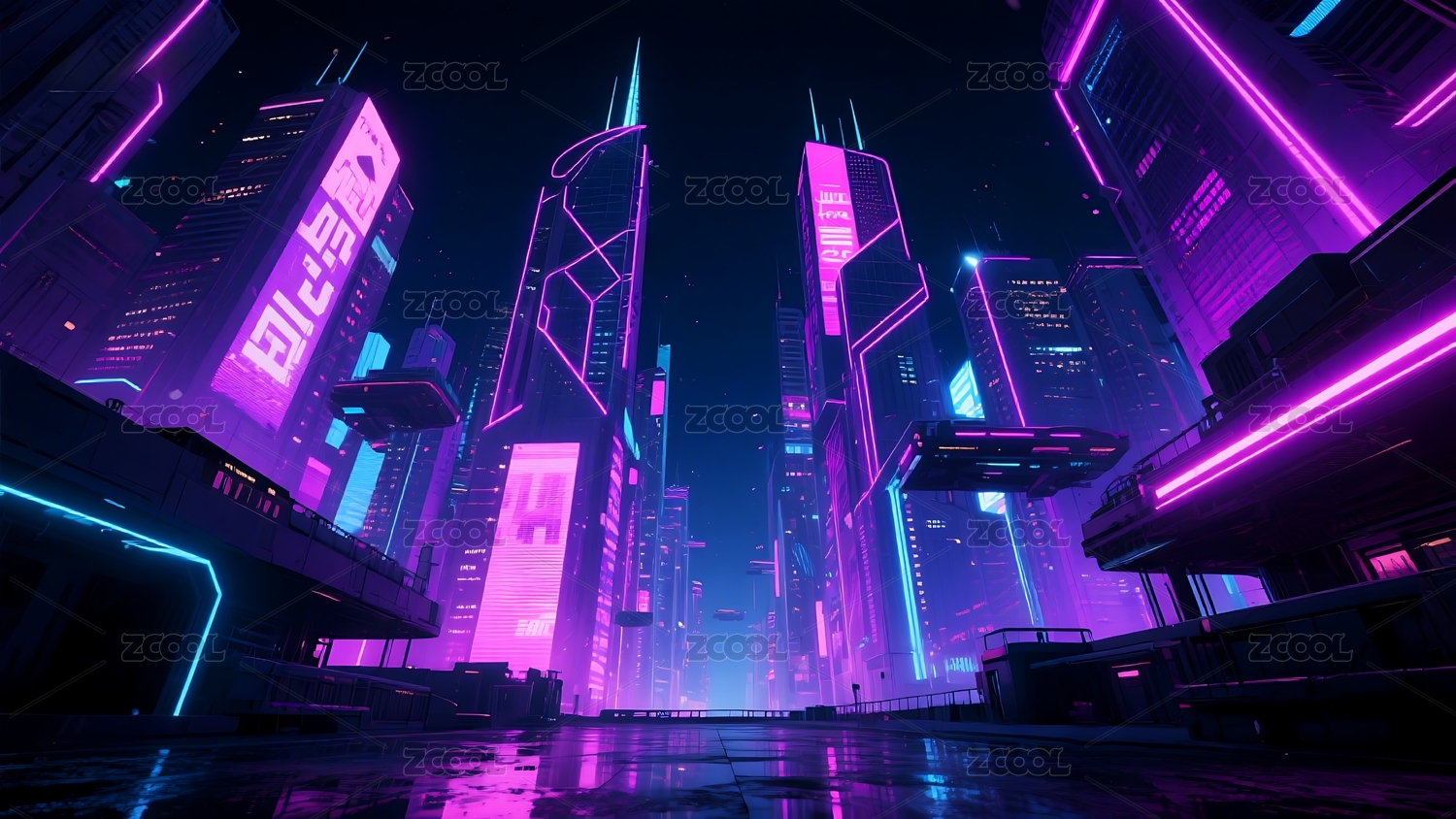 建筑,红色,蓝色,科技,未来,紫色,天空,城市,霓虹,夜景