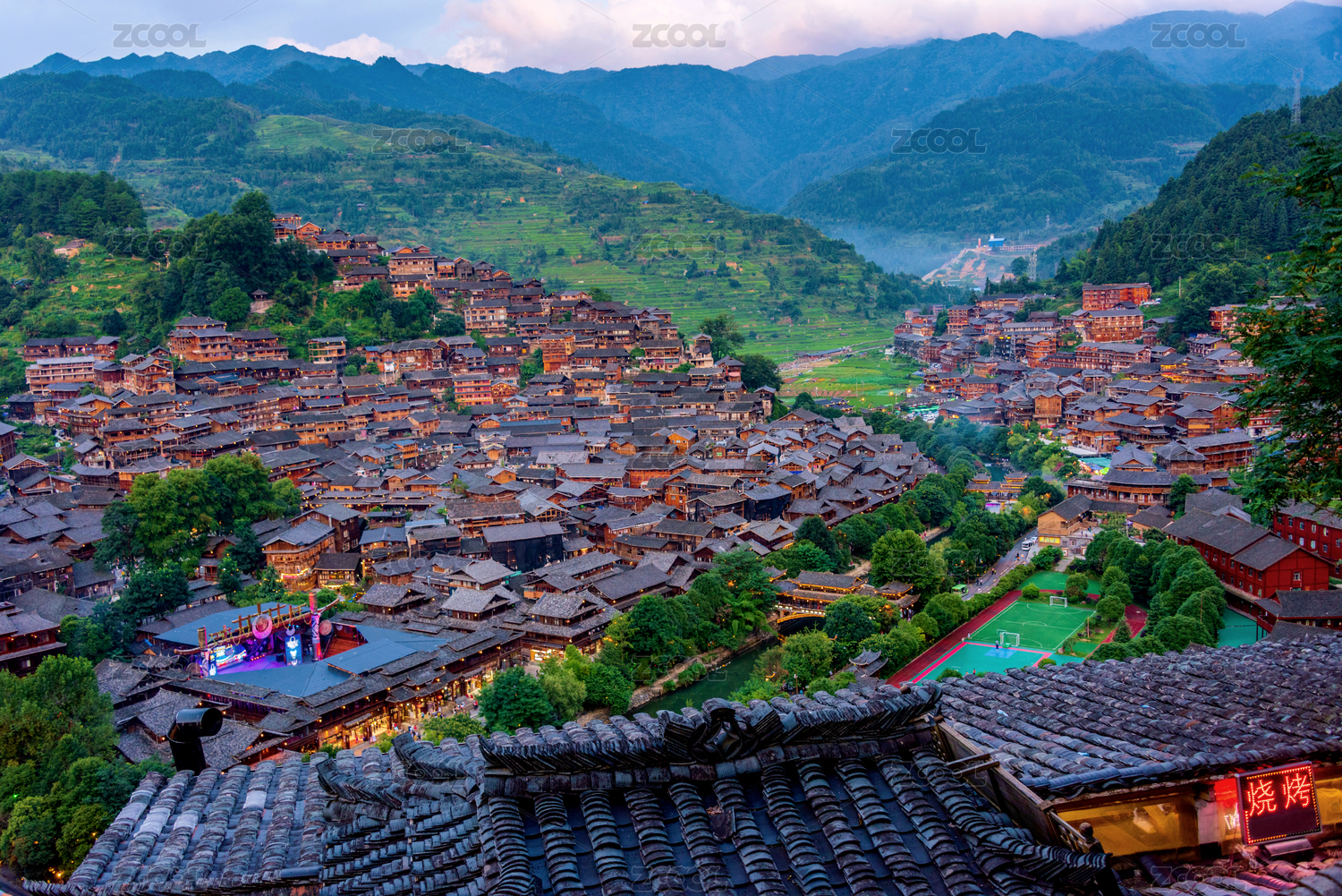 中国贵州黔东南肇兴侗寨房屋建筑风光
