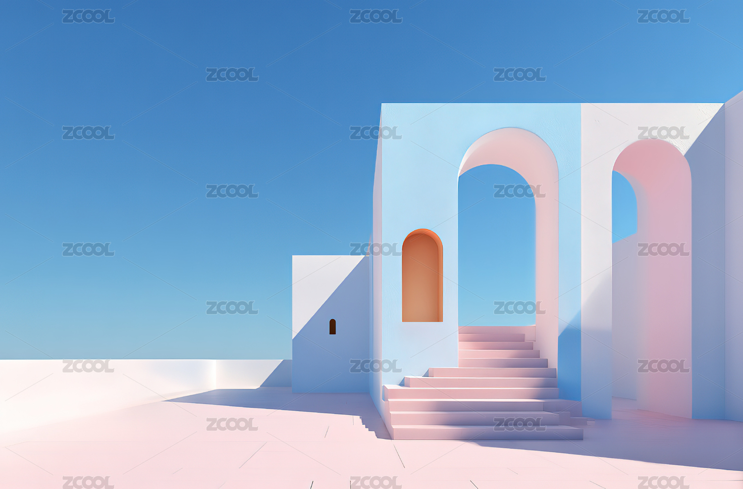 拱形门廊与阶梯的抽象空间