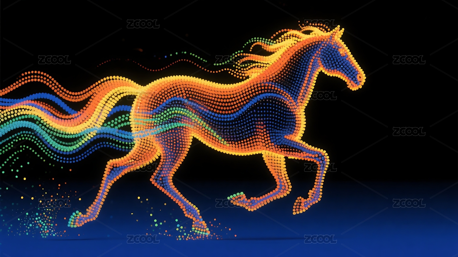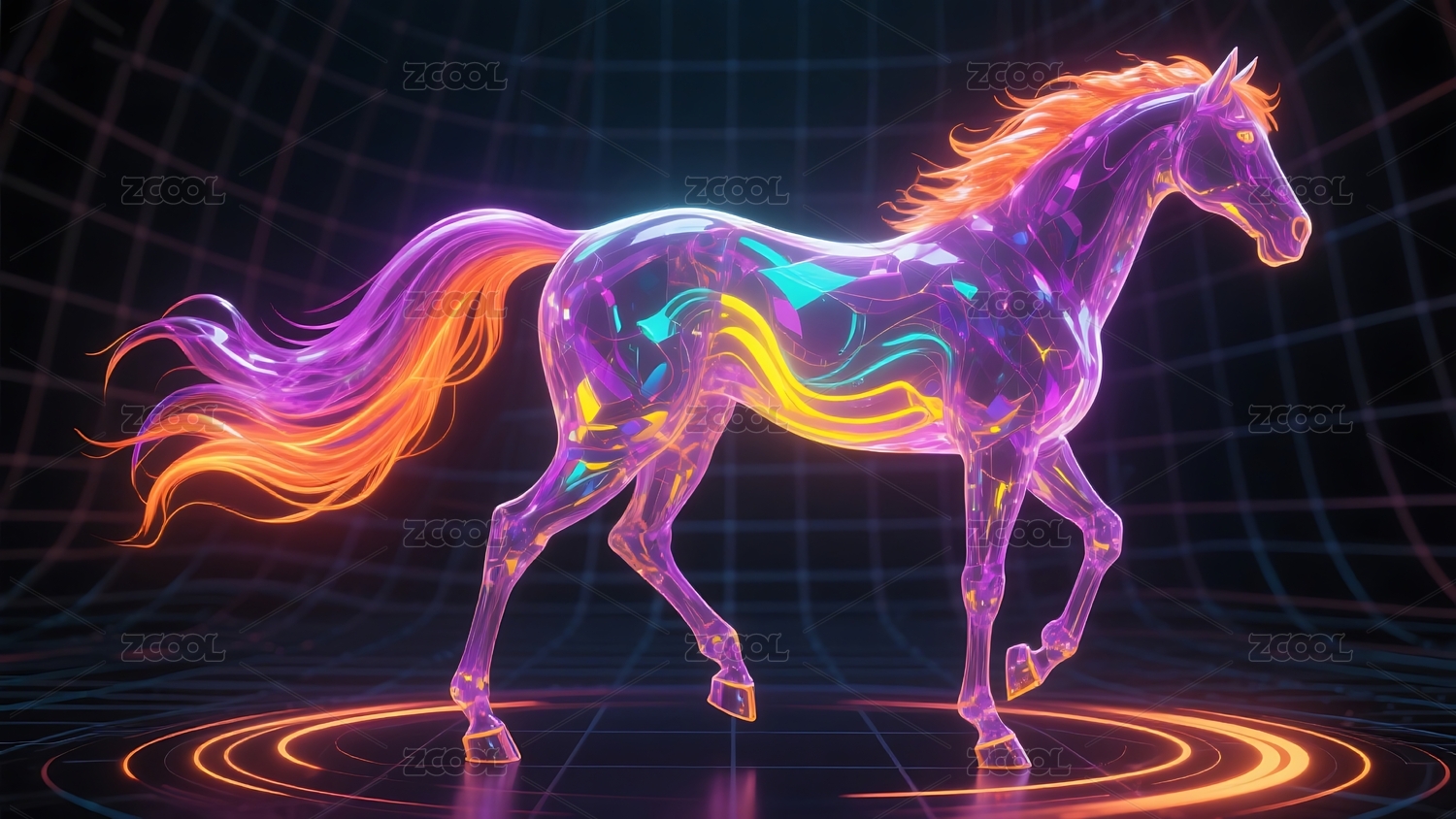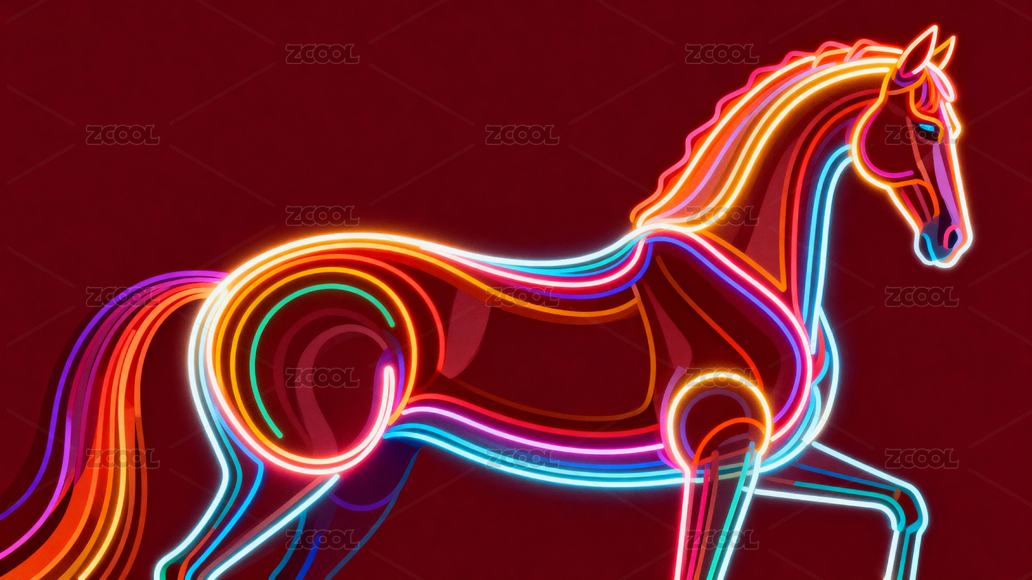 霓虹光效奔马动态艺术图