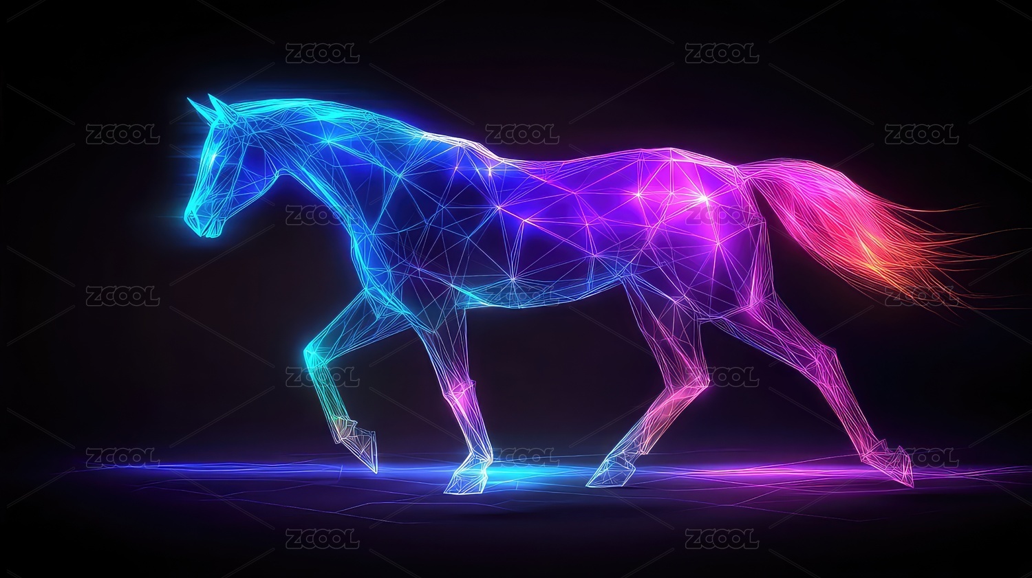霓虹灯光下的抽象几何马匹图案