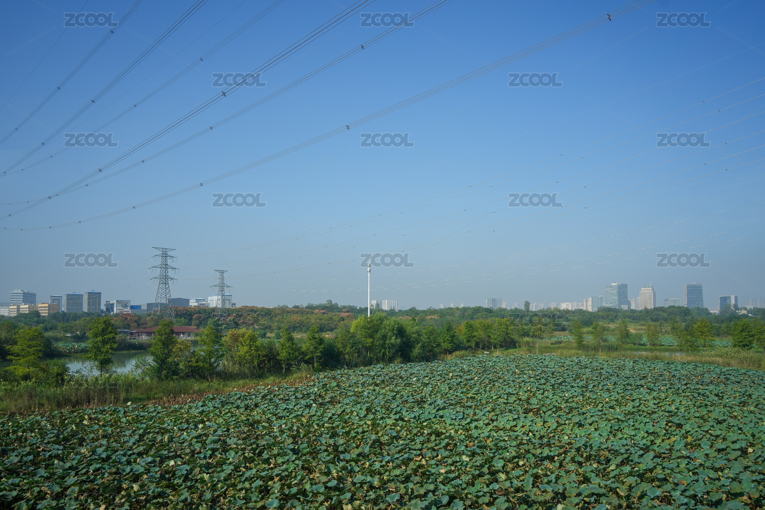 武汉,光谷,荷塘,池塘,输电线,郊区,生态,户外,天空,自然