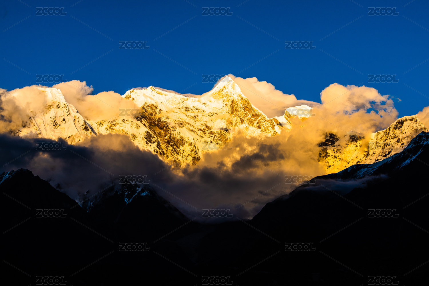 中国西藏日喀则珠峰东坡雪山日照金山