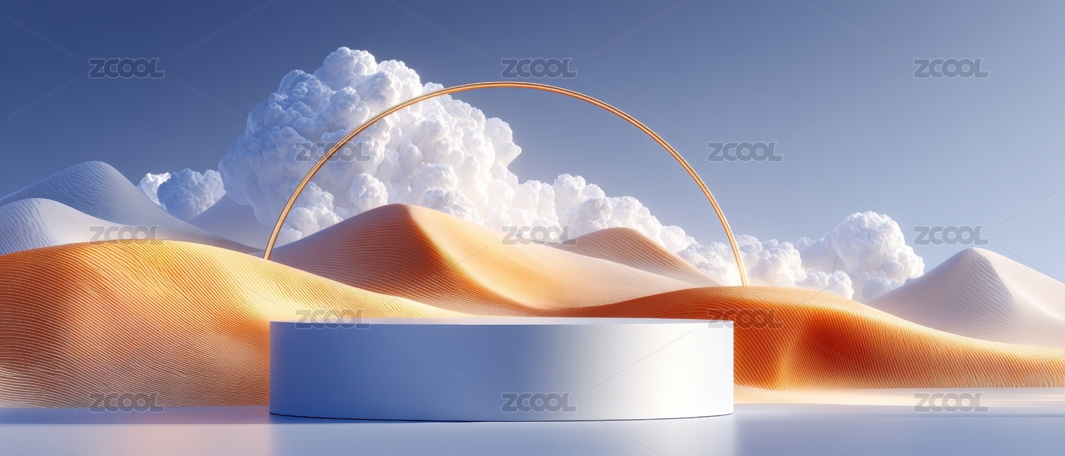 金色圆台与抽象山丘背景