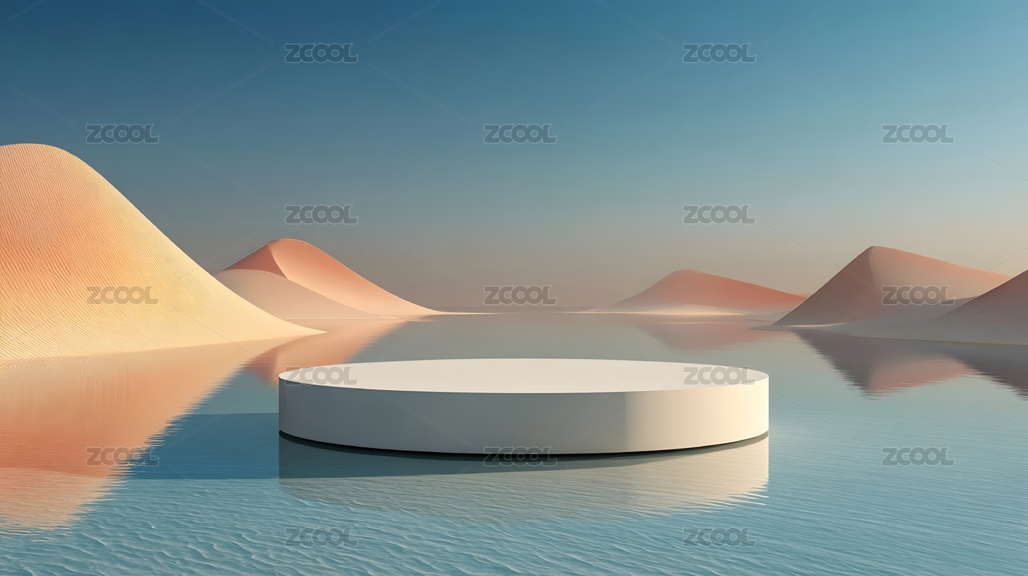 高山下的宁静镜面展台场景