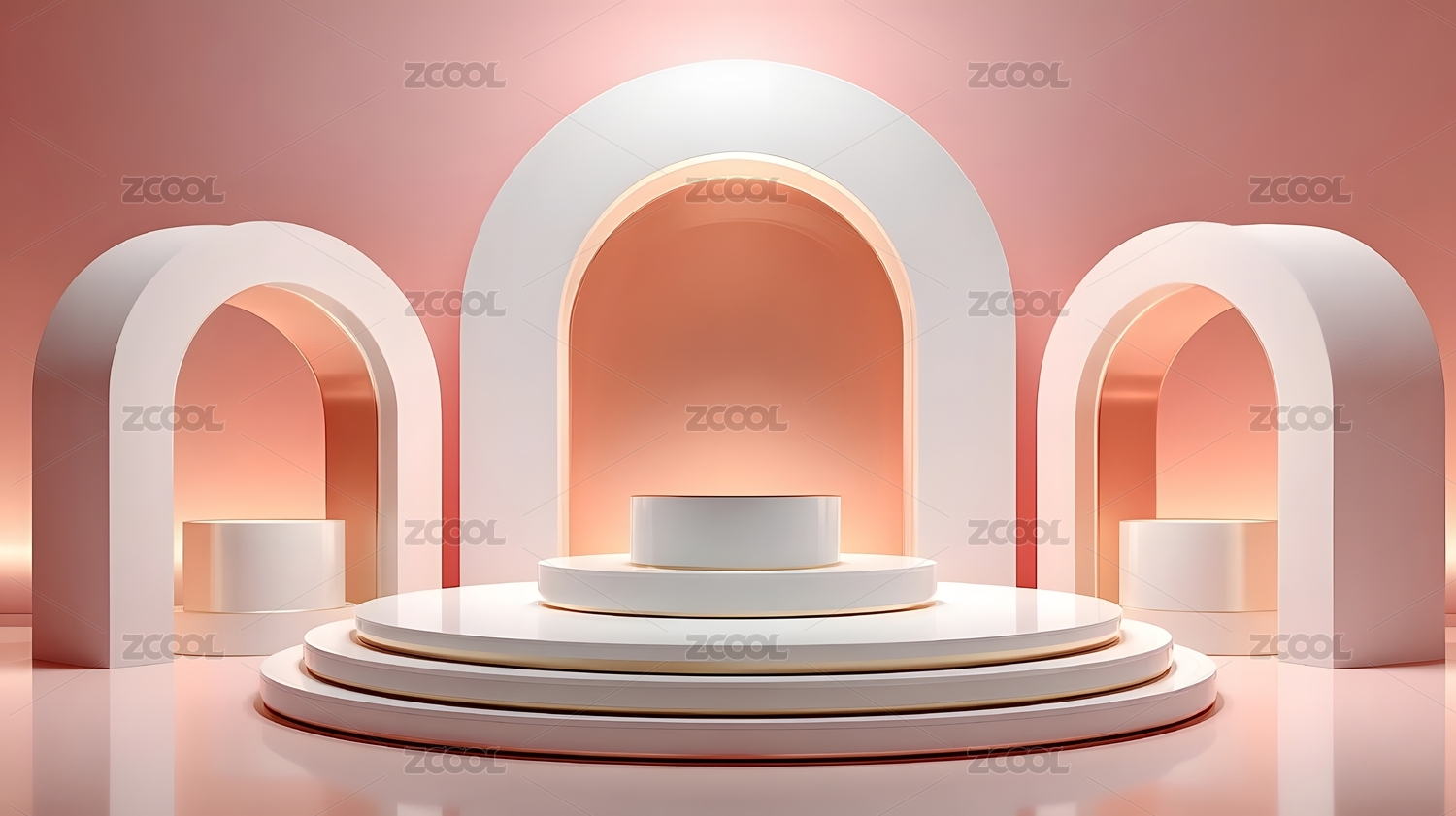 简约白色拱门舞台展示梦幻空间