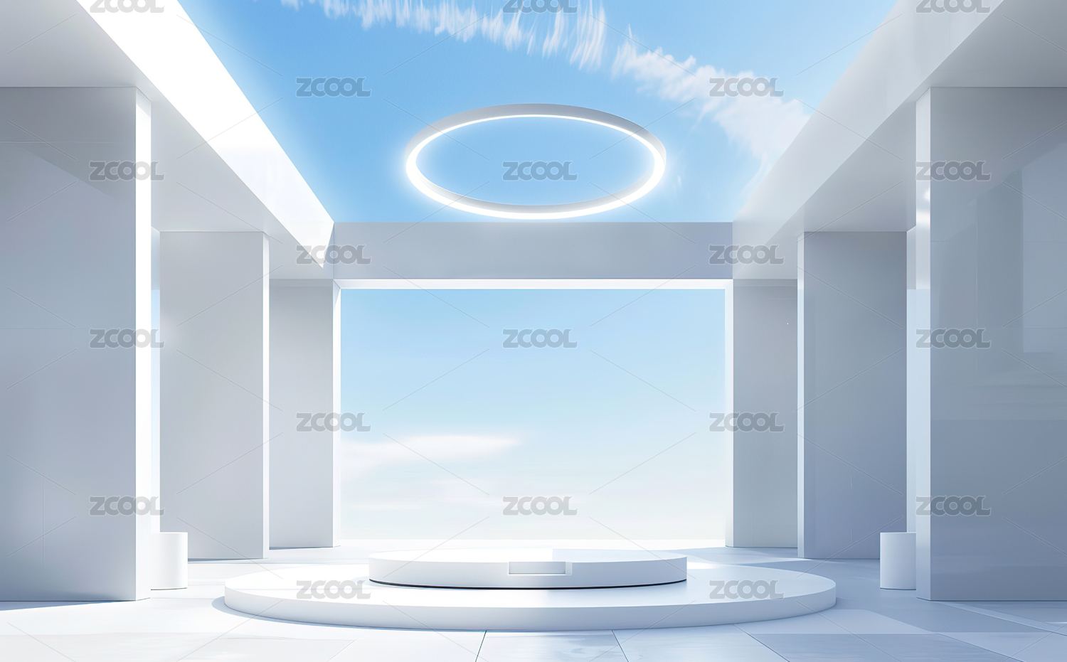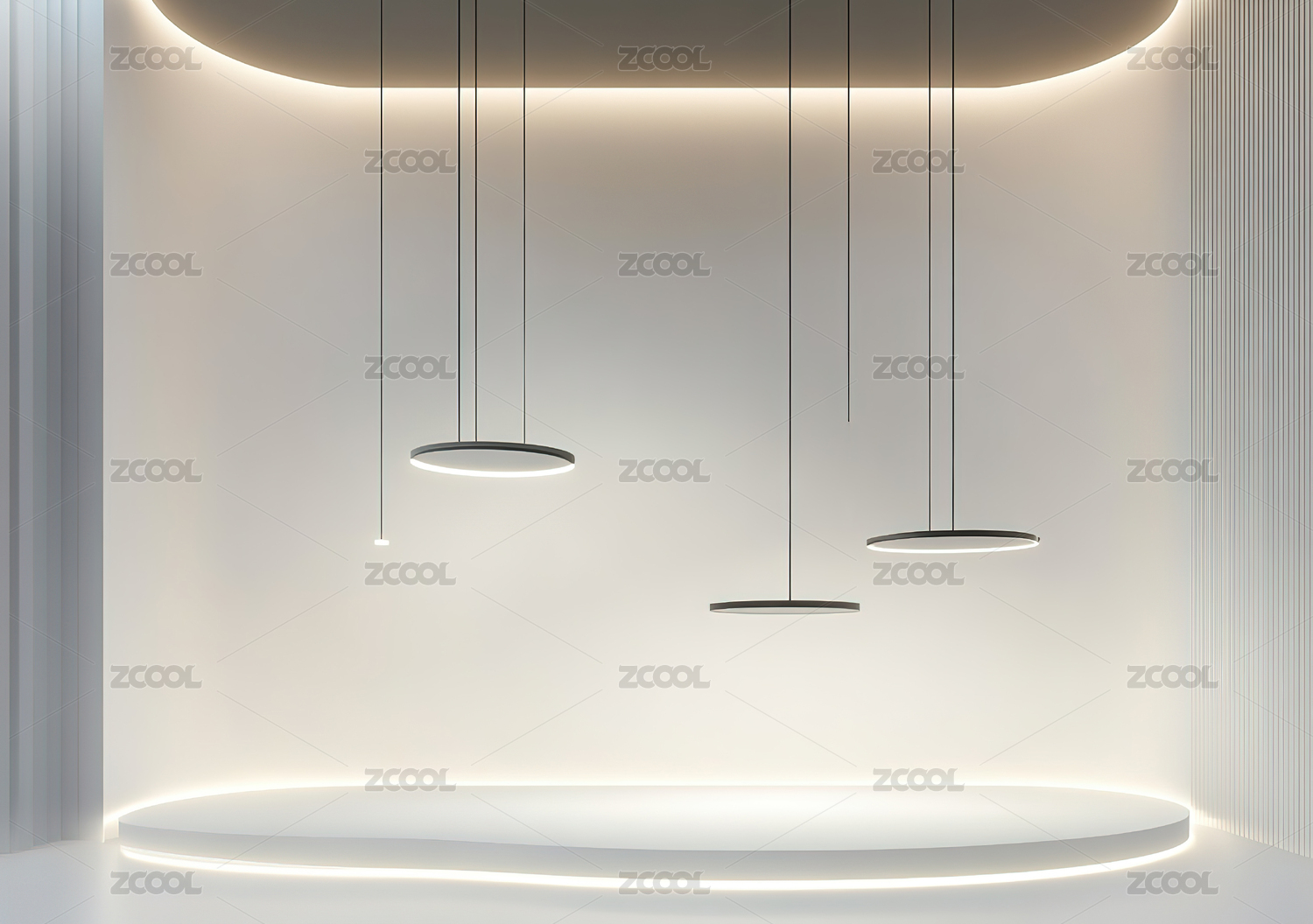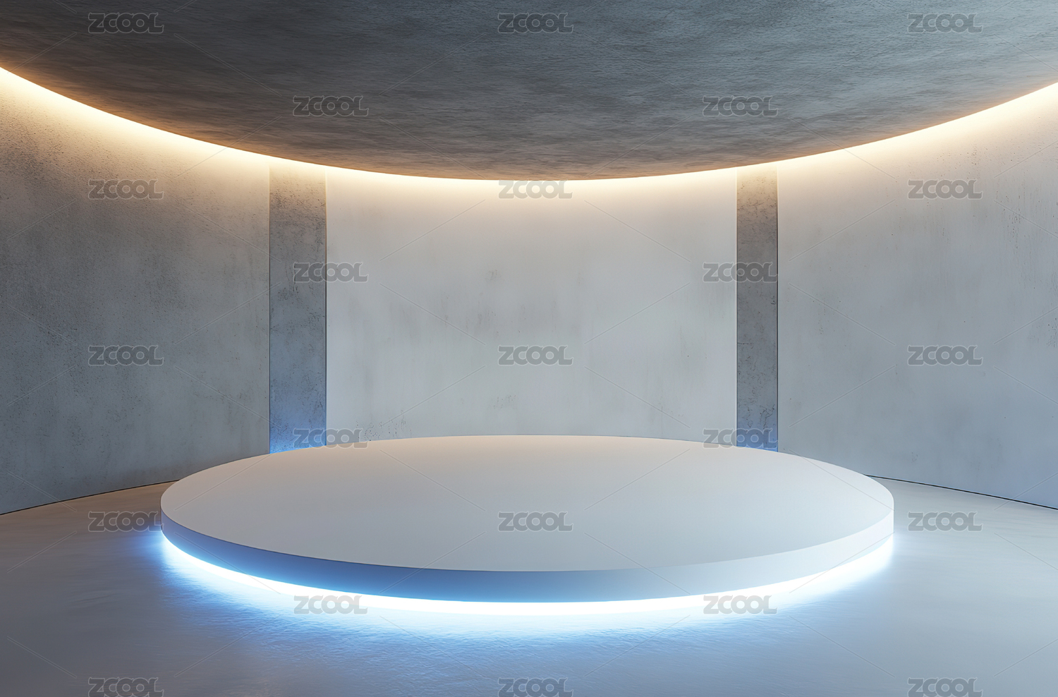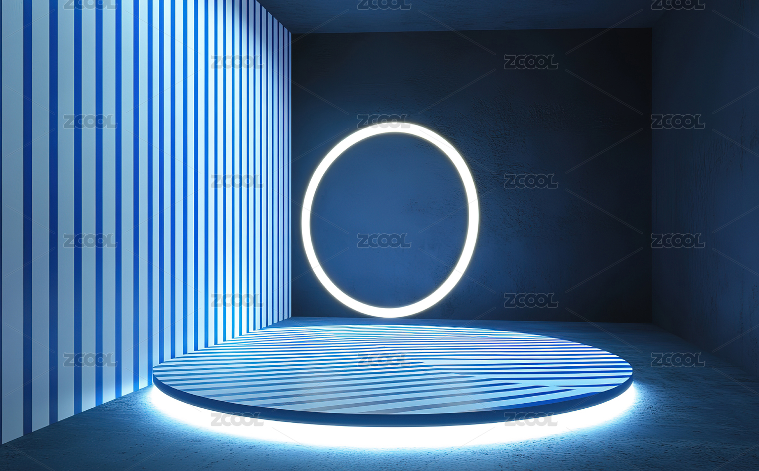 3D渲染科技风霓虹灯线条电商产品展台背景