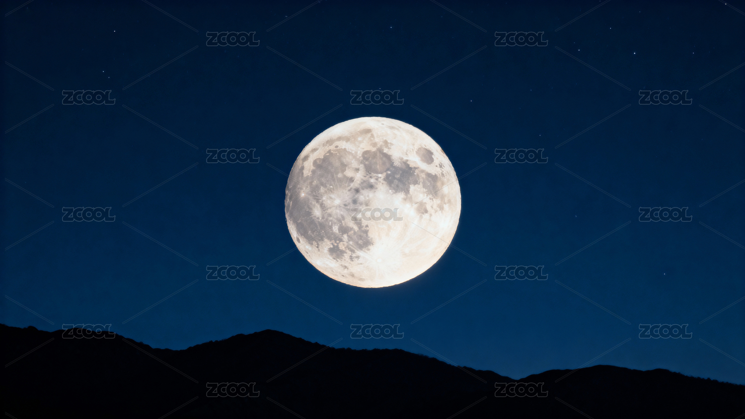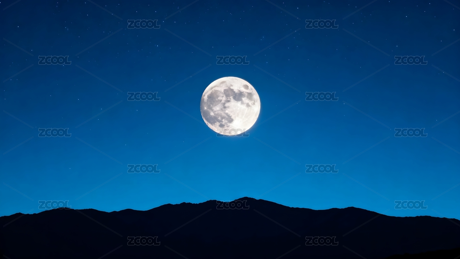 明亮满月深蓝夜空山峦