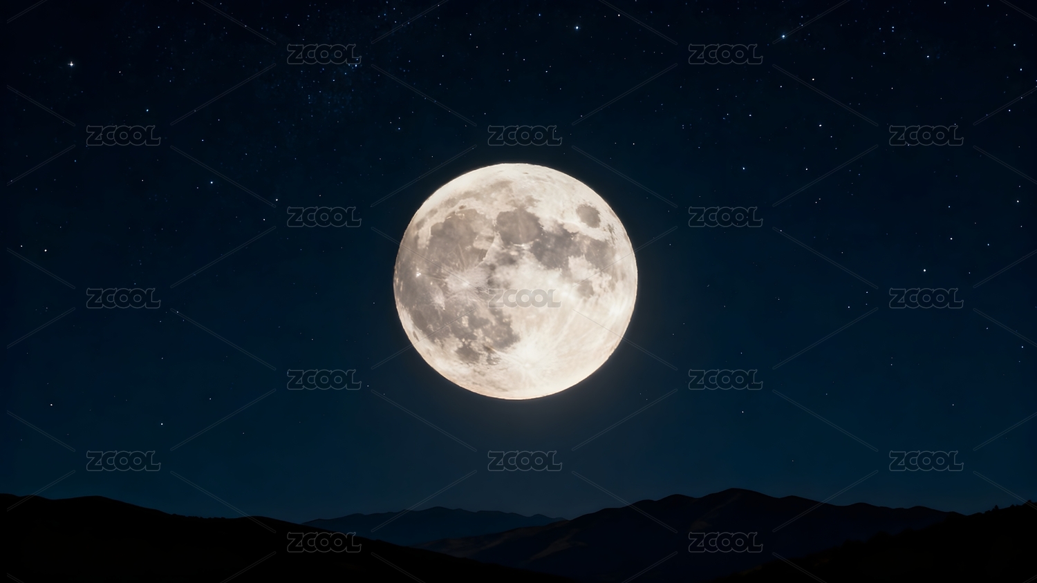 满月高悬夜空山峦剪影