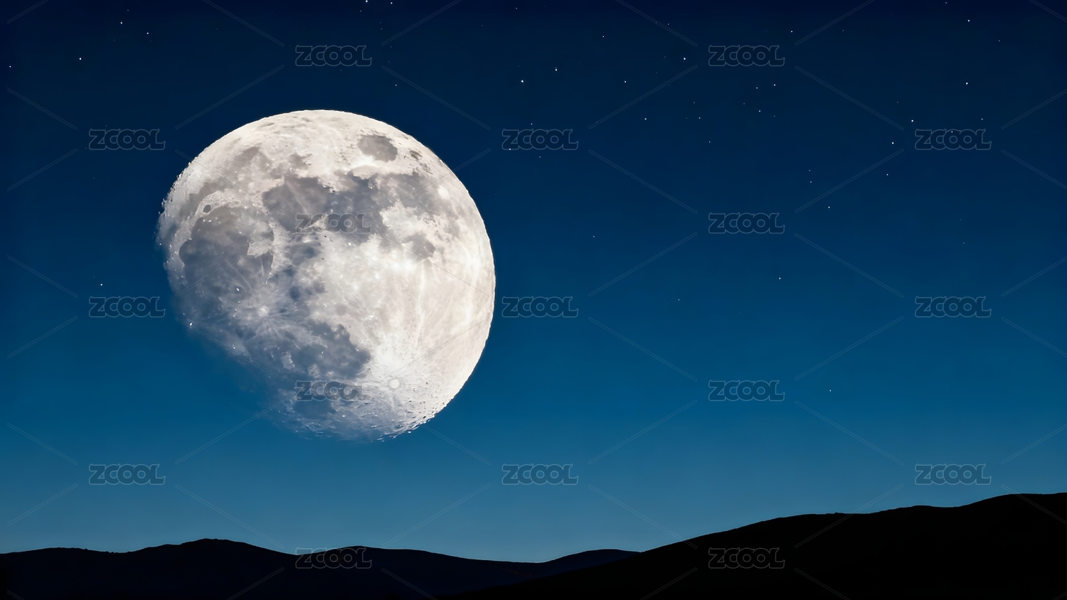 蓝白满月与深蓝星空背景