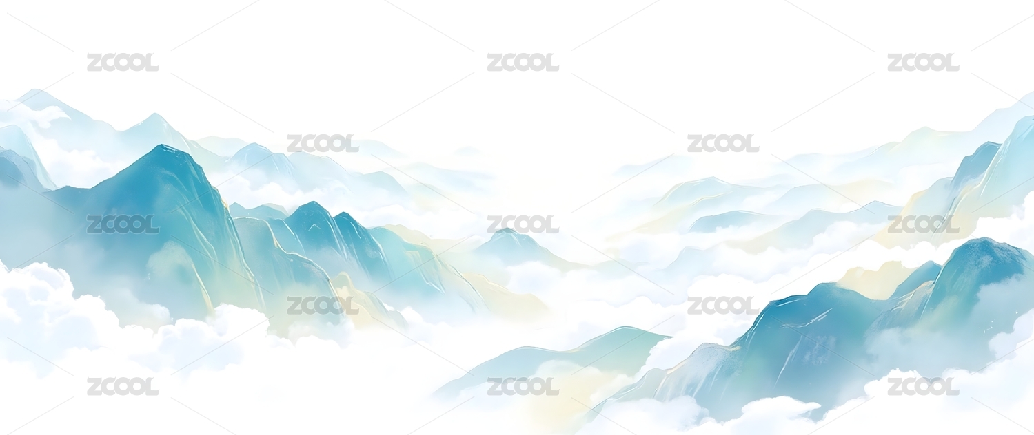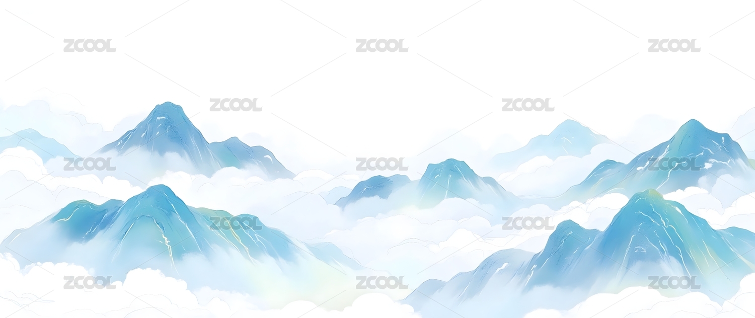 云雾缭绕的蓝色山脉画卷