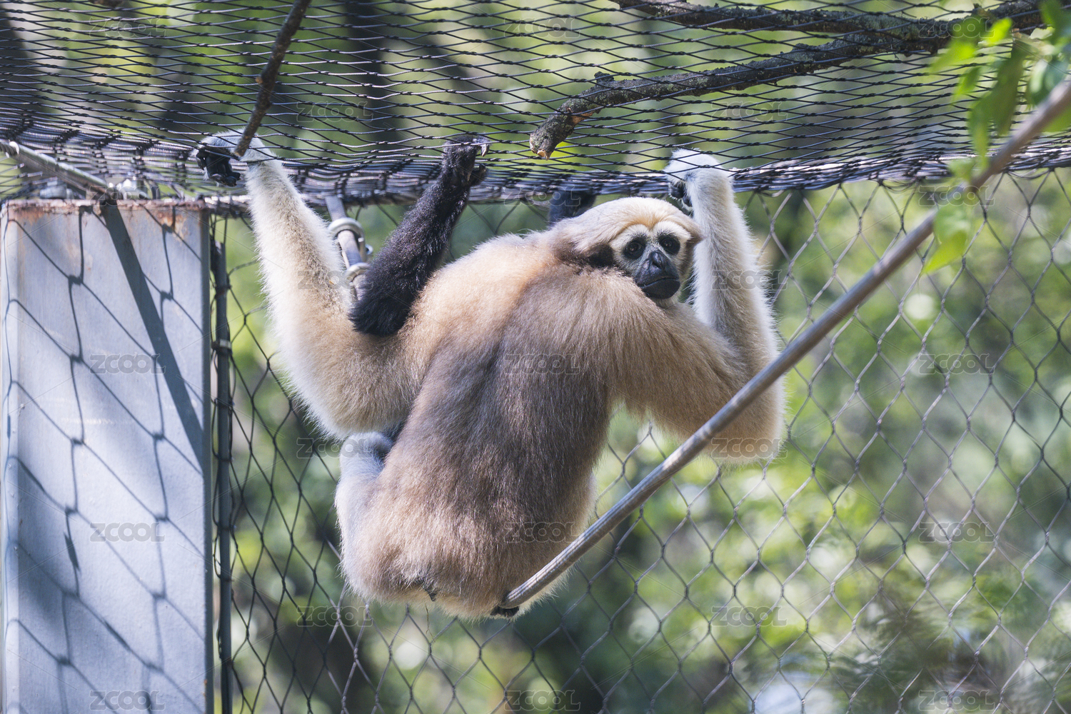 铁笼中的长臂猿母子