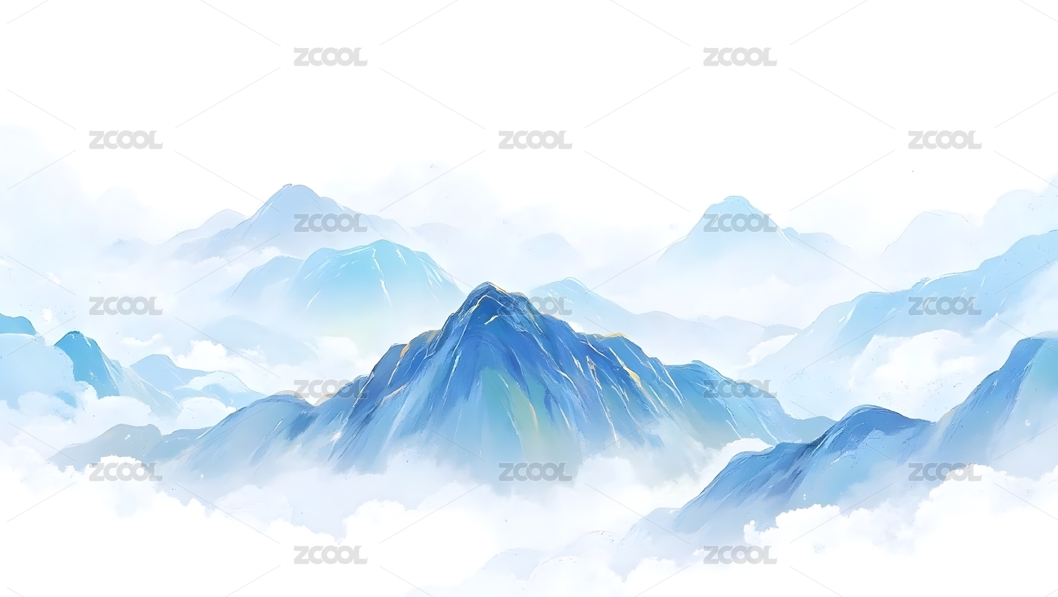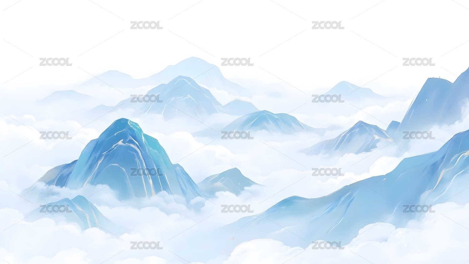 云海缭绕的蓝色山峰画卷
