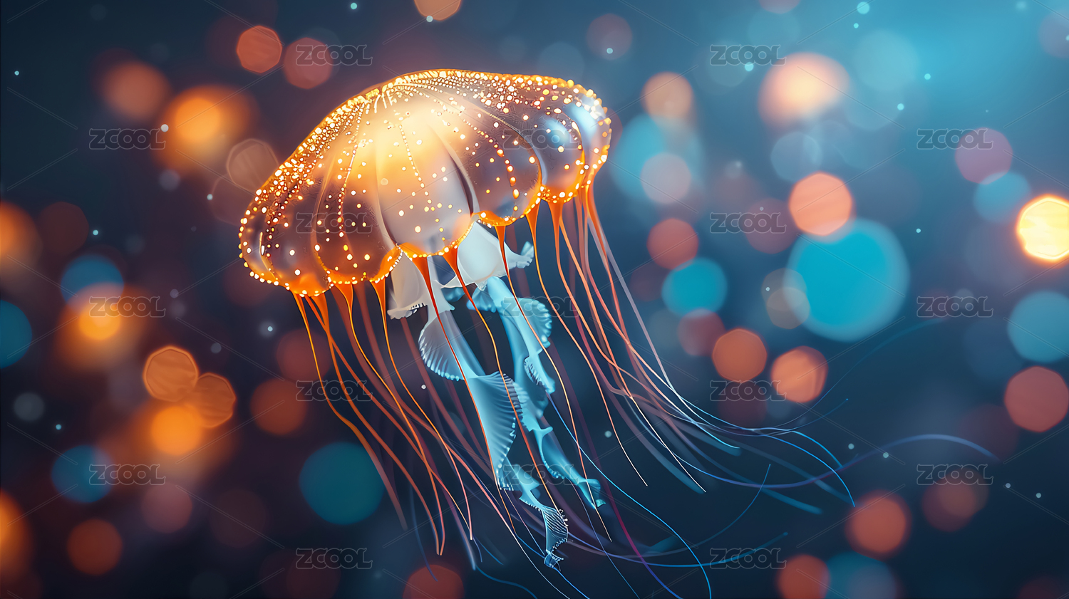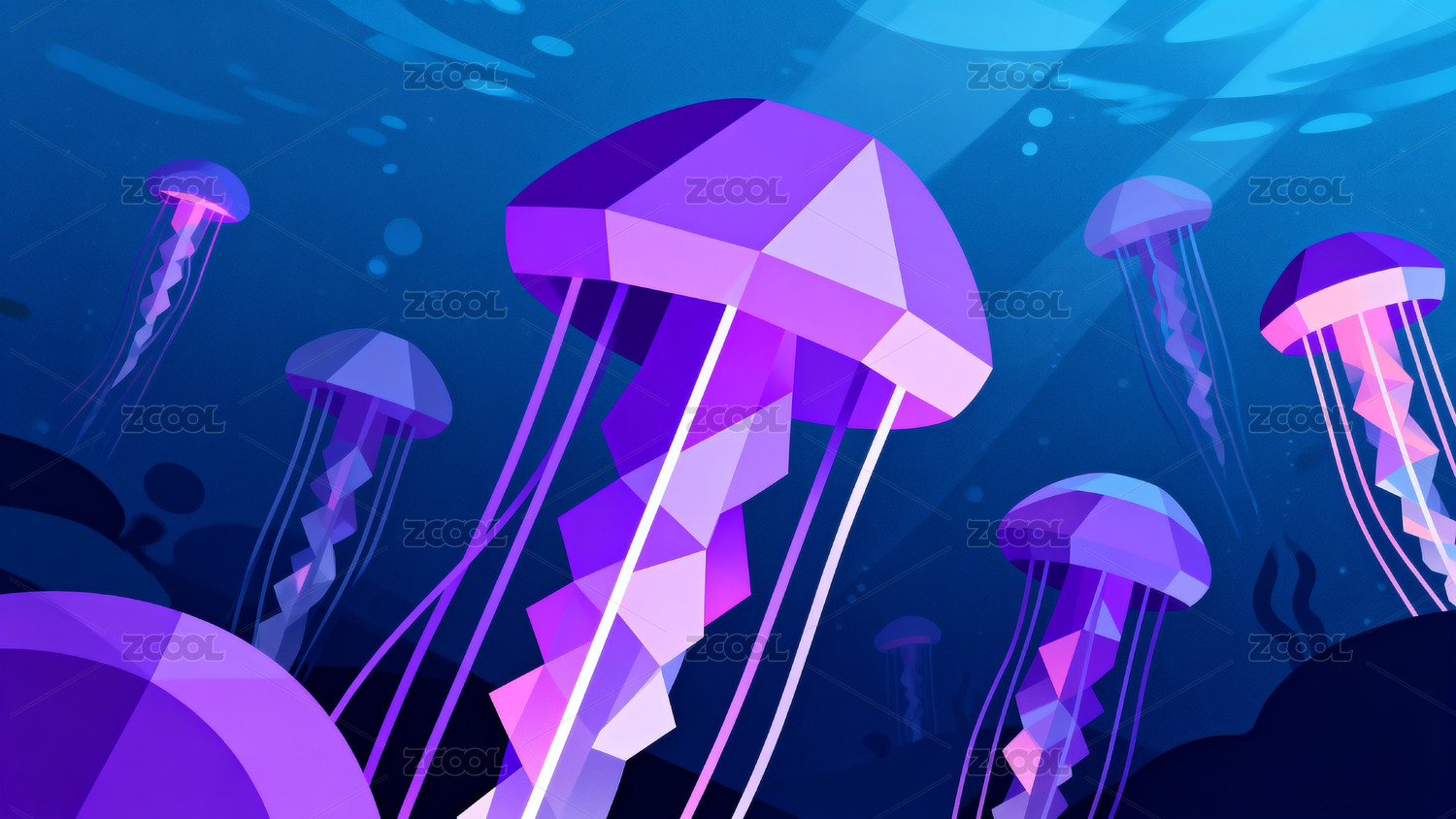 炫彩几何水母海底游动