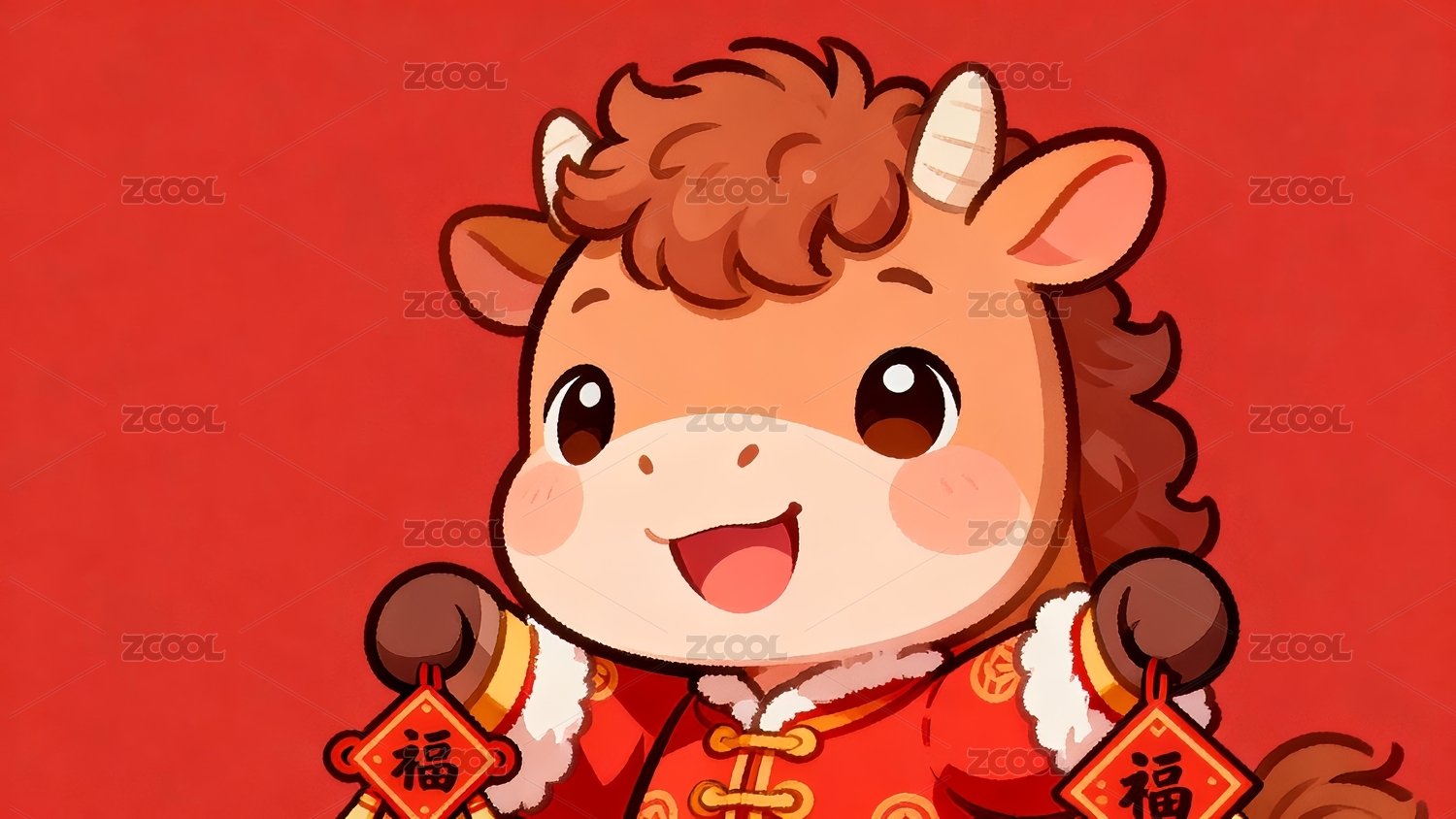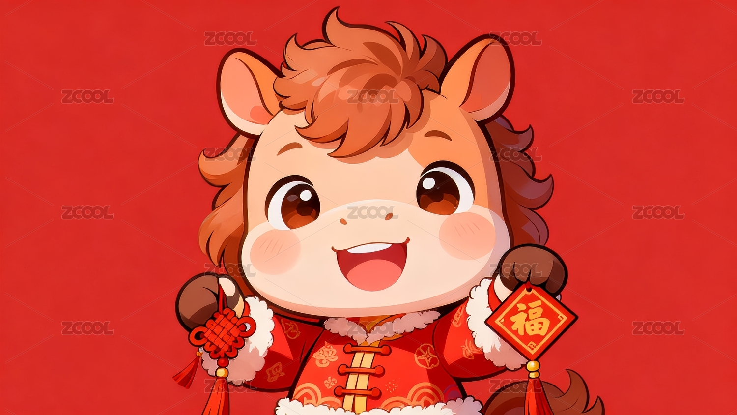卡通马年春节吉祥物