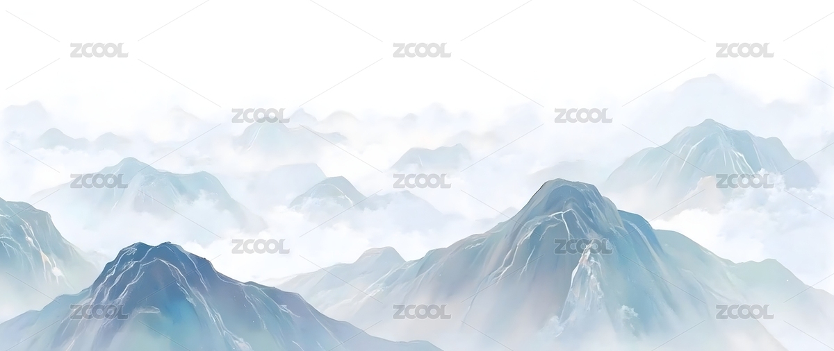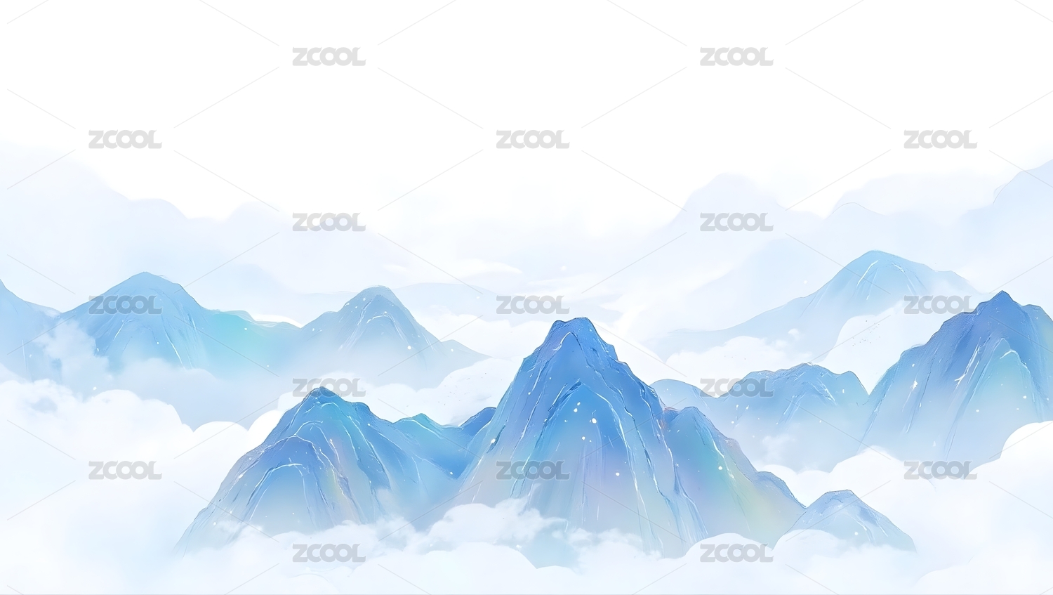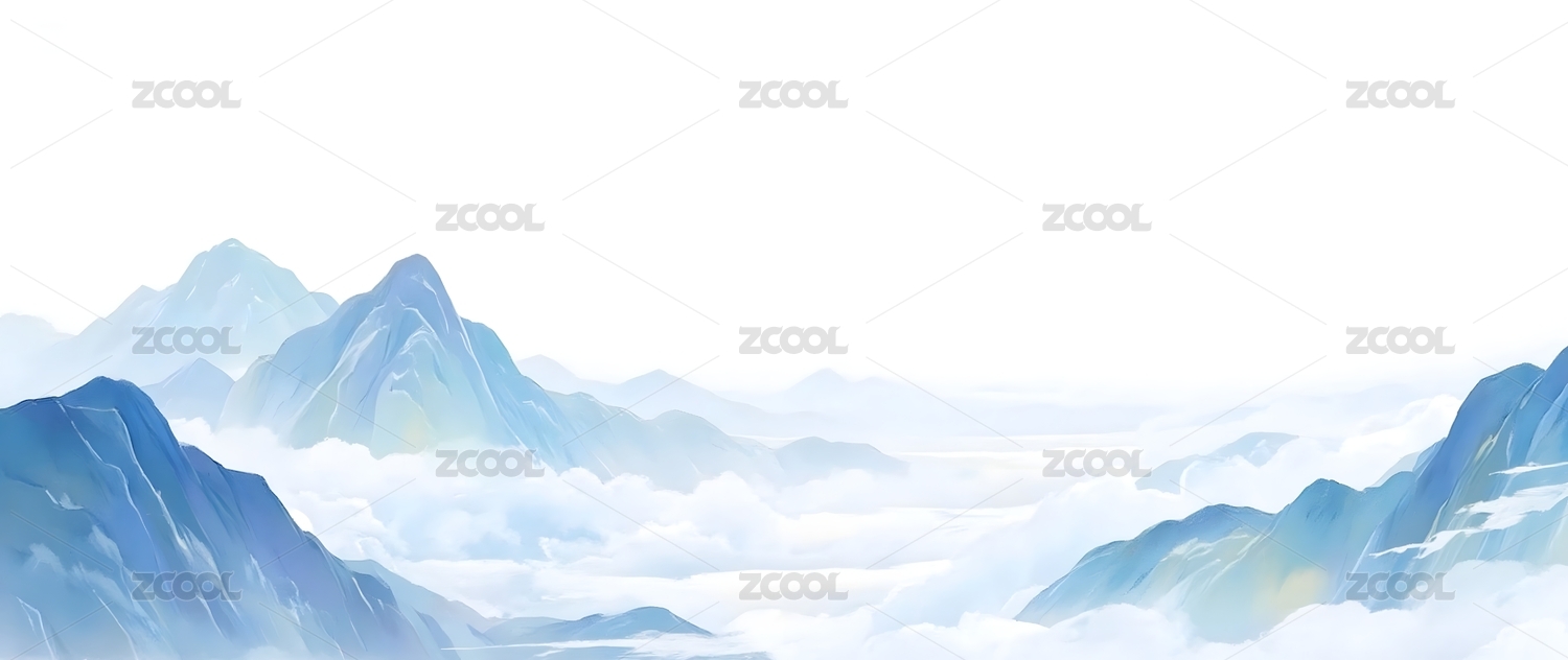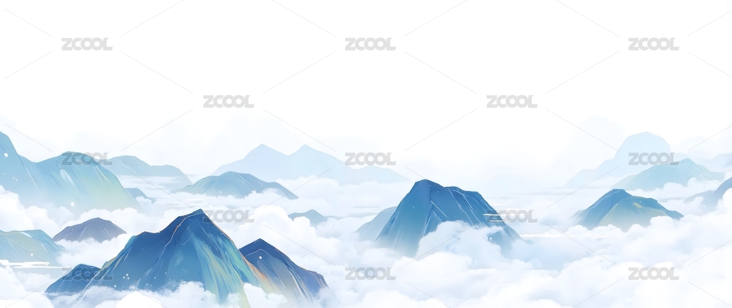 山峰,云海,蓝天,自然,风景,朦胧,淡雅,静谧,雾气,白色