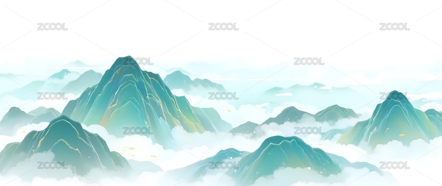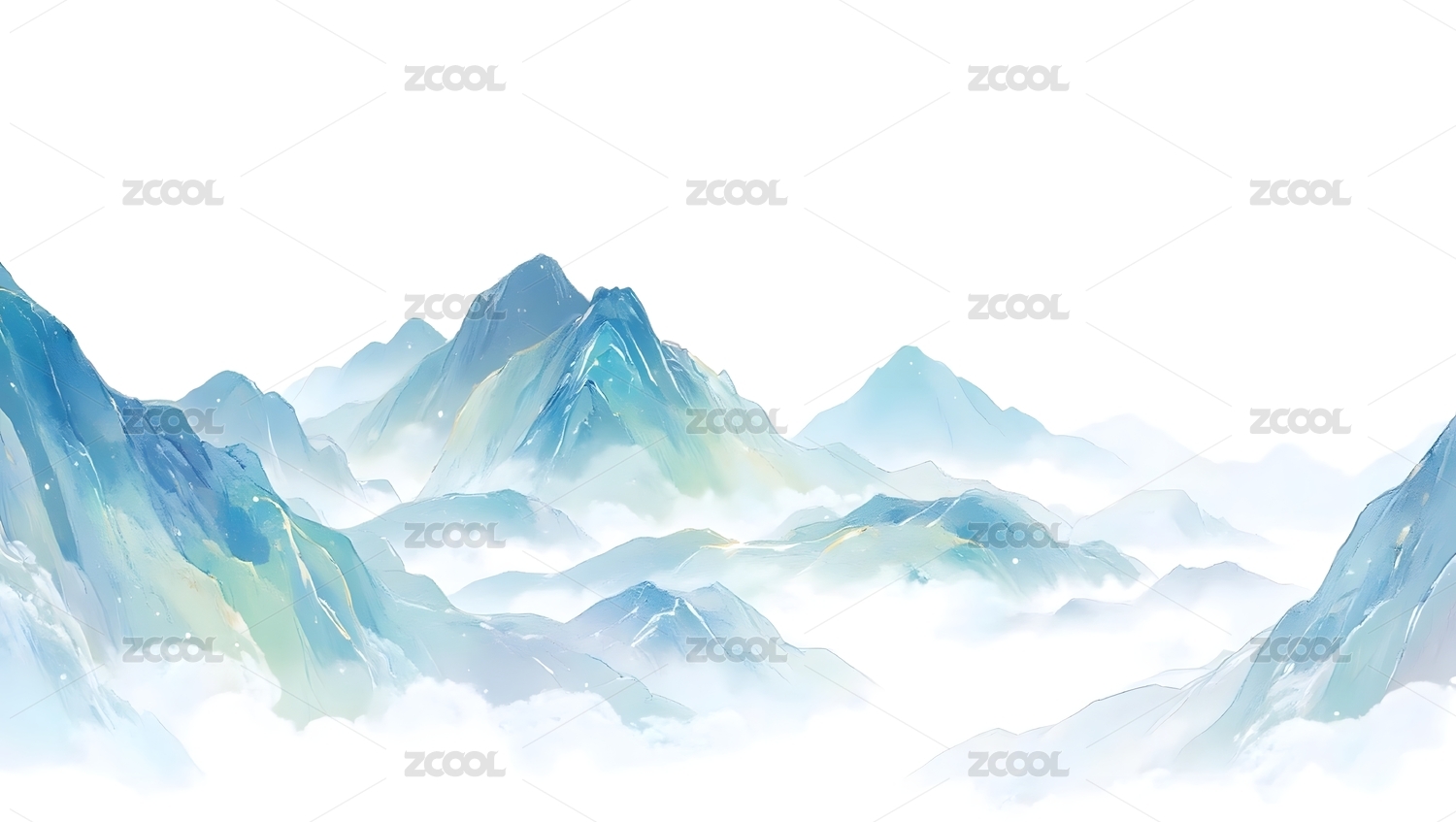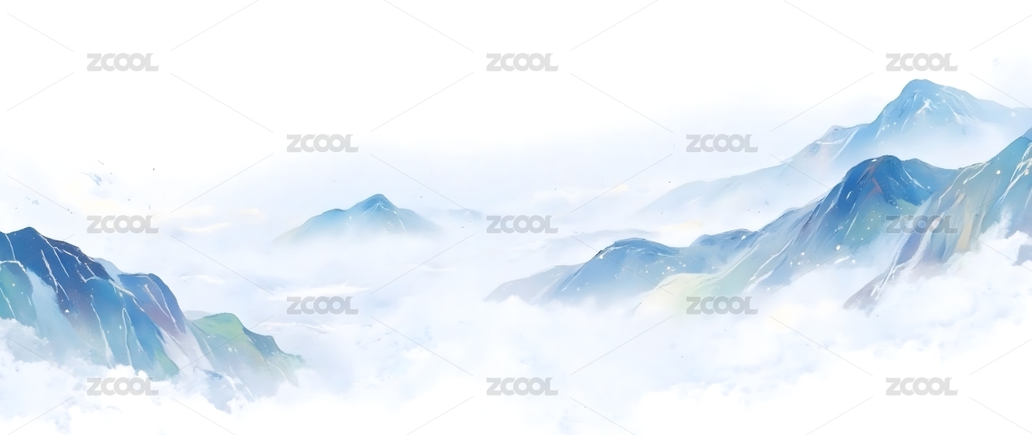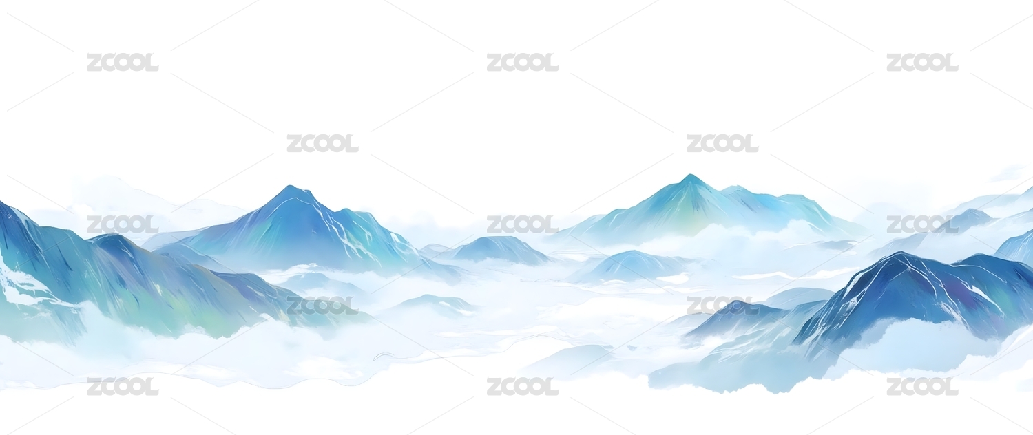 山峰,云海,蓝天,自然,风景,朦胧,淡雅,静谧,雾气,白色