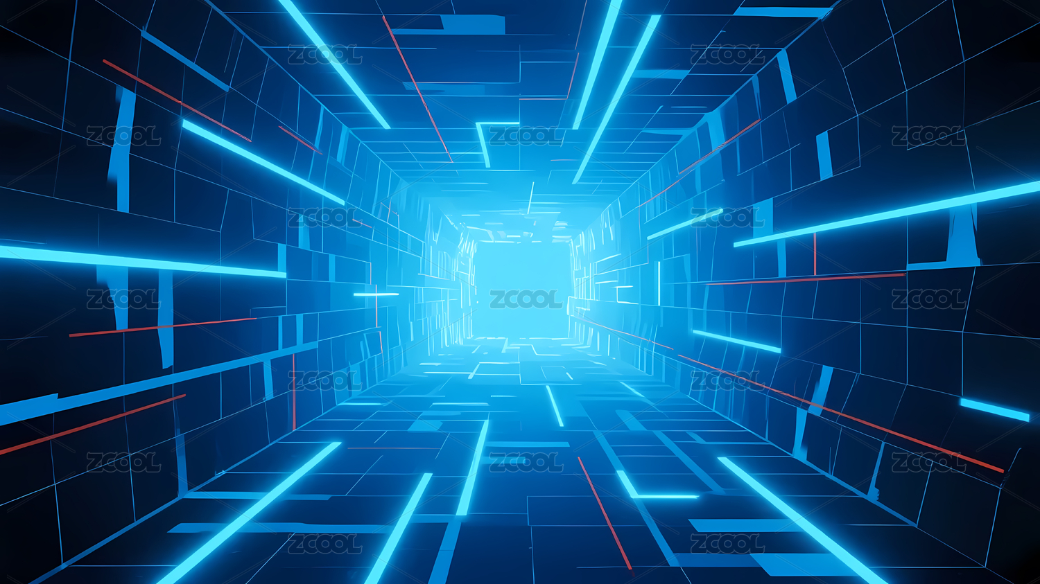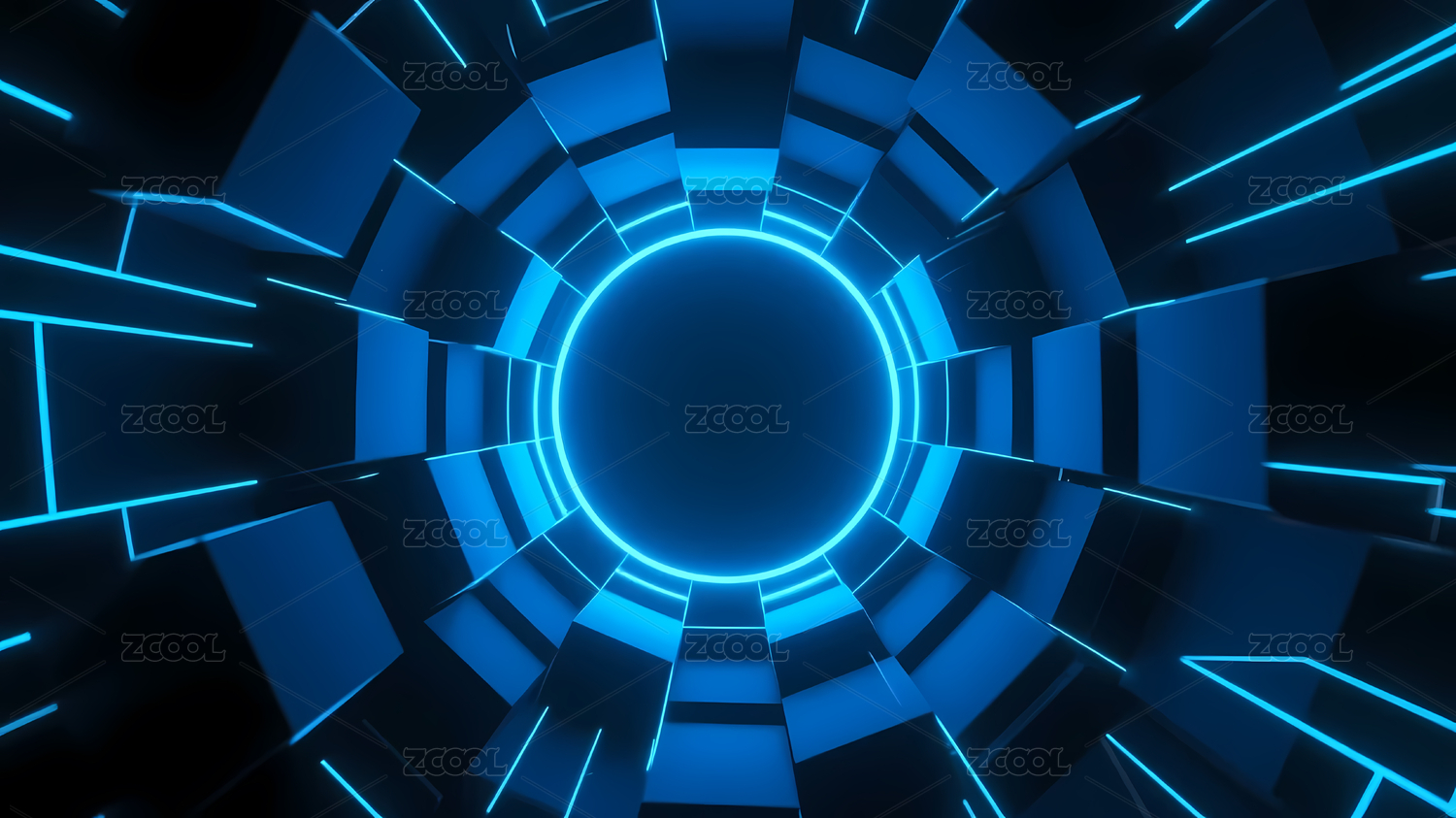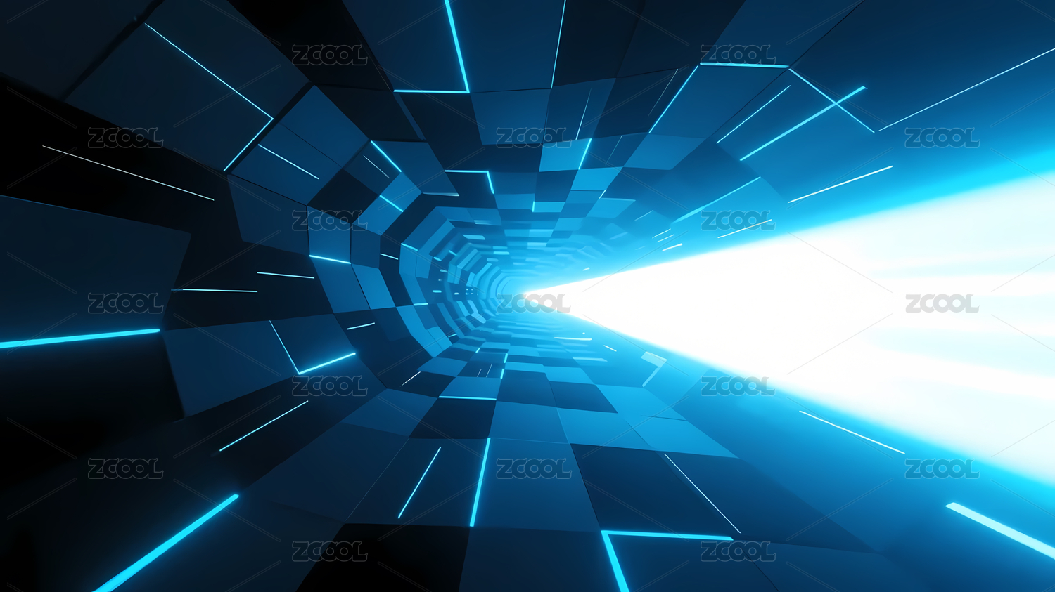 蓝色,科技,未来,深黑,隧道,光效,梦幻,光芒,框架,延伸