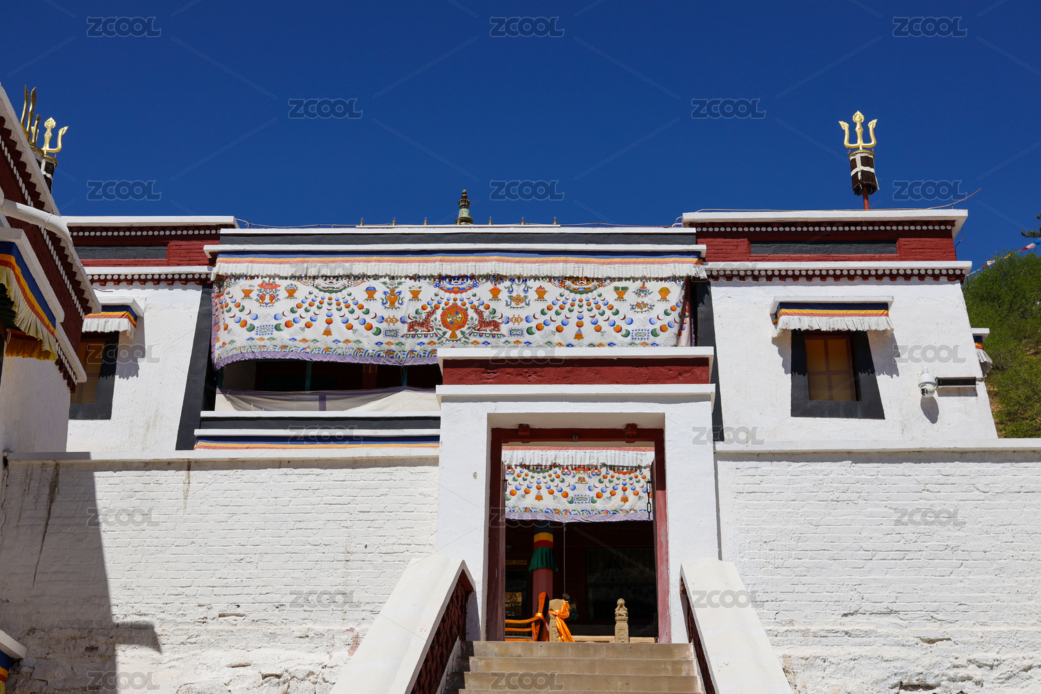 中国四川阿坝郎木寺寺庙古建筑红墙