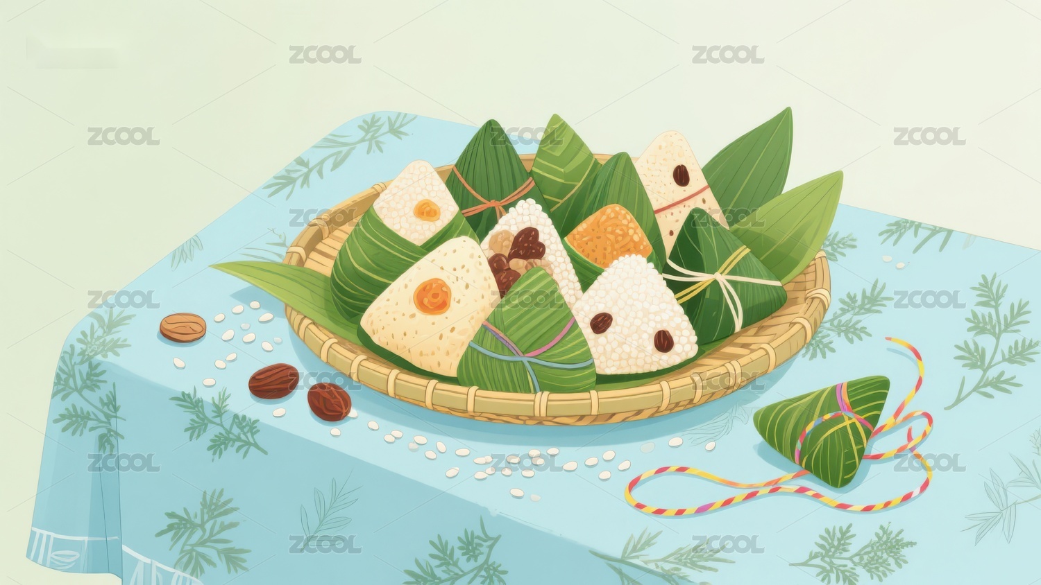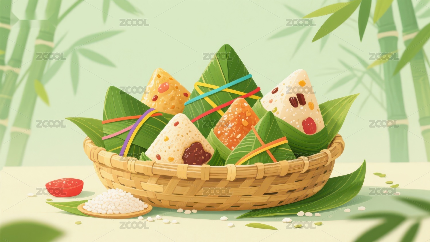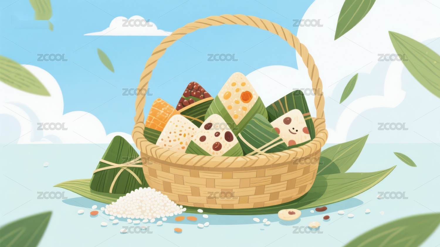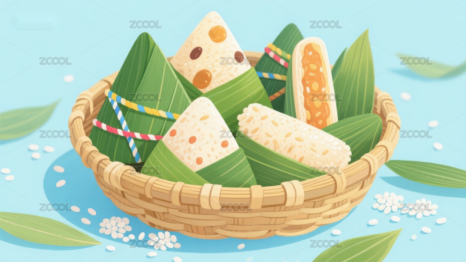 粽子,竹篮,糯米,粽叶,节日,微笑,装饰,花朵,豆子,传统