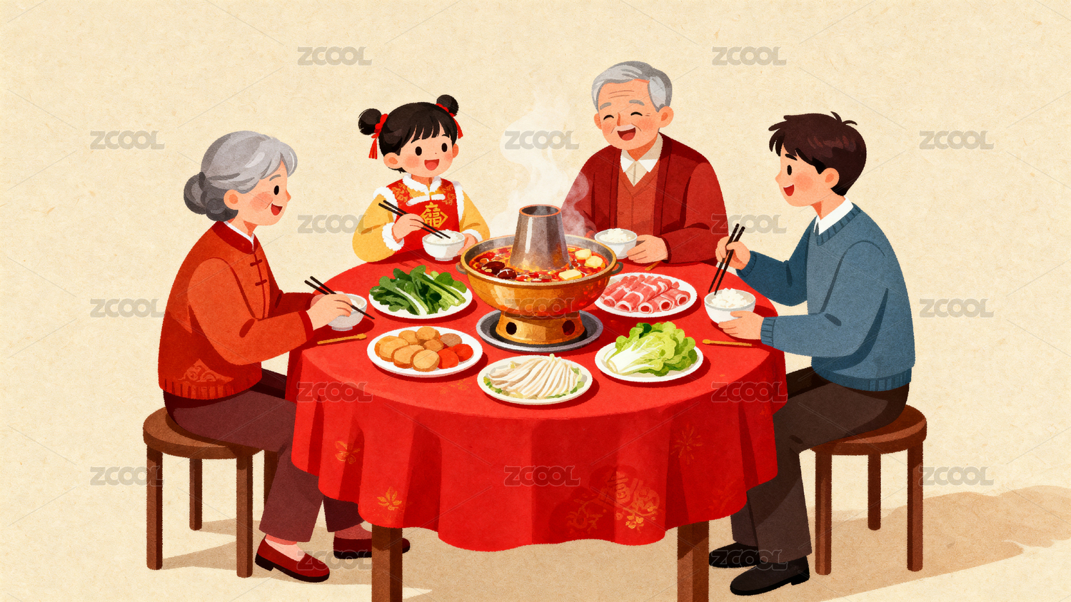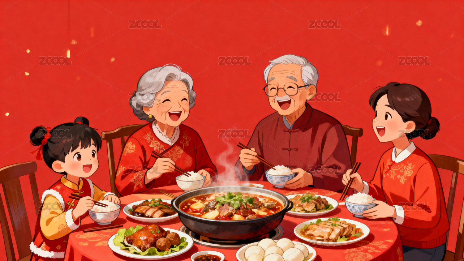 红色,传统,餐具,筷子,食物,笑容,欢乐,团圆,老人,青年